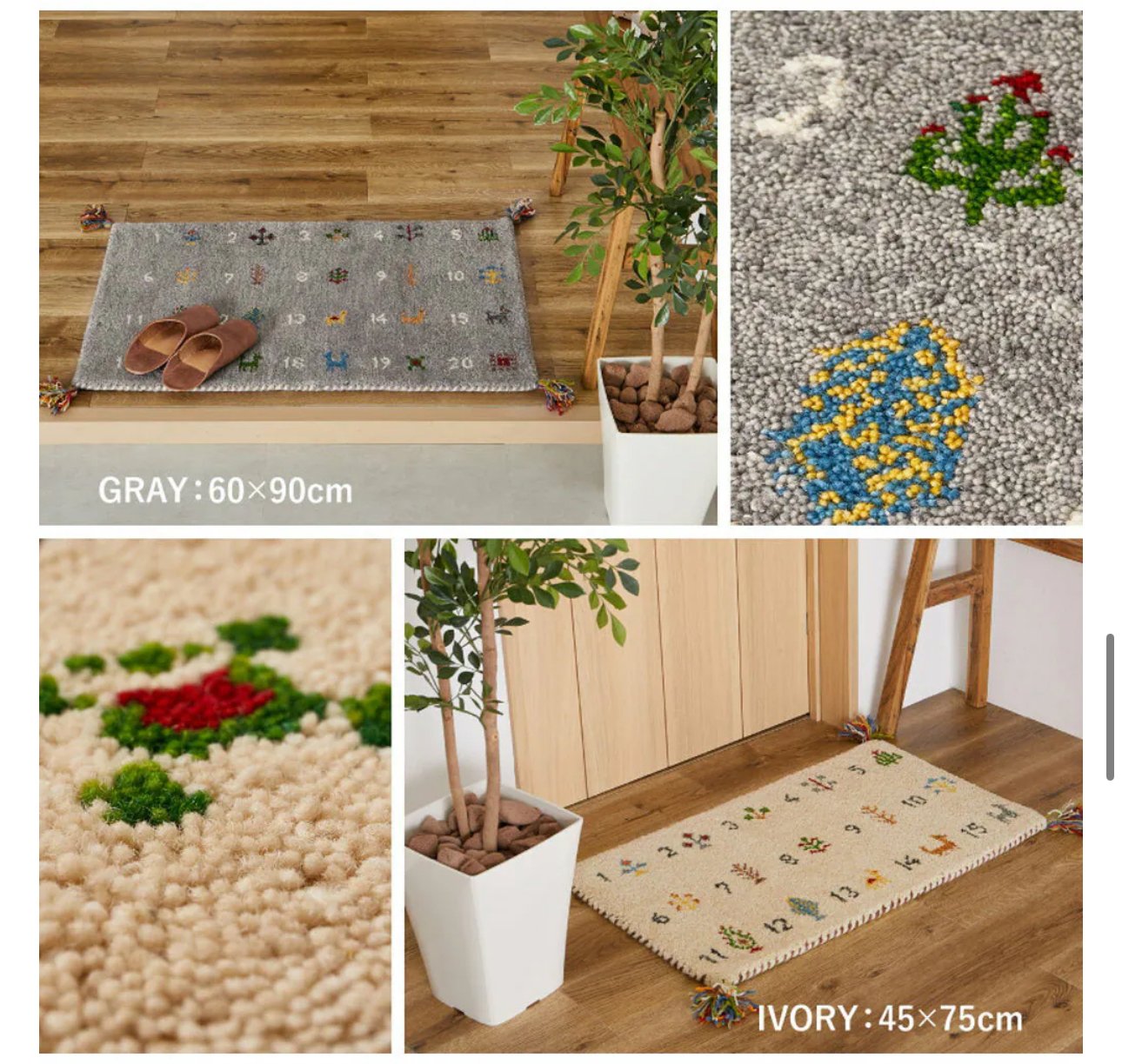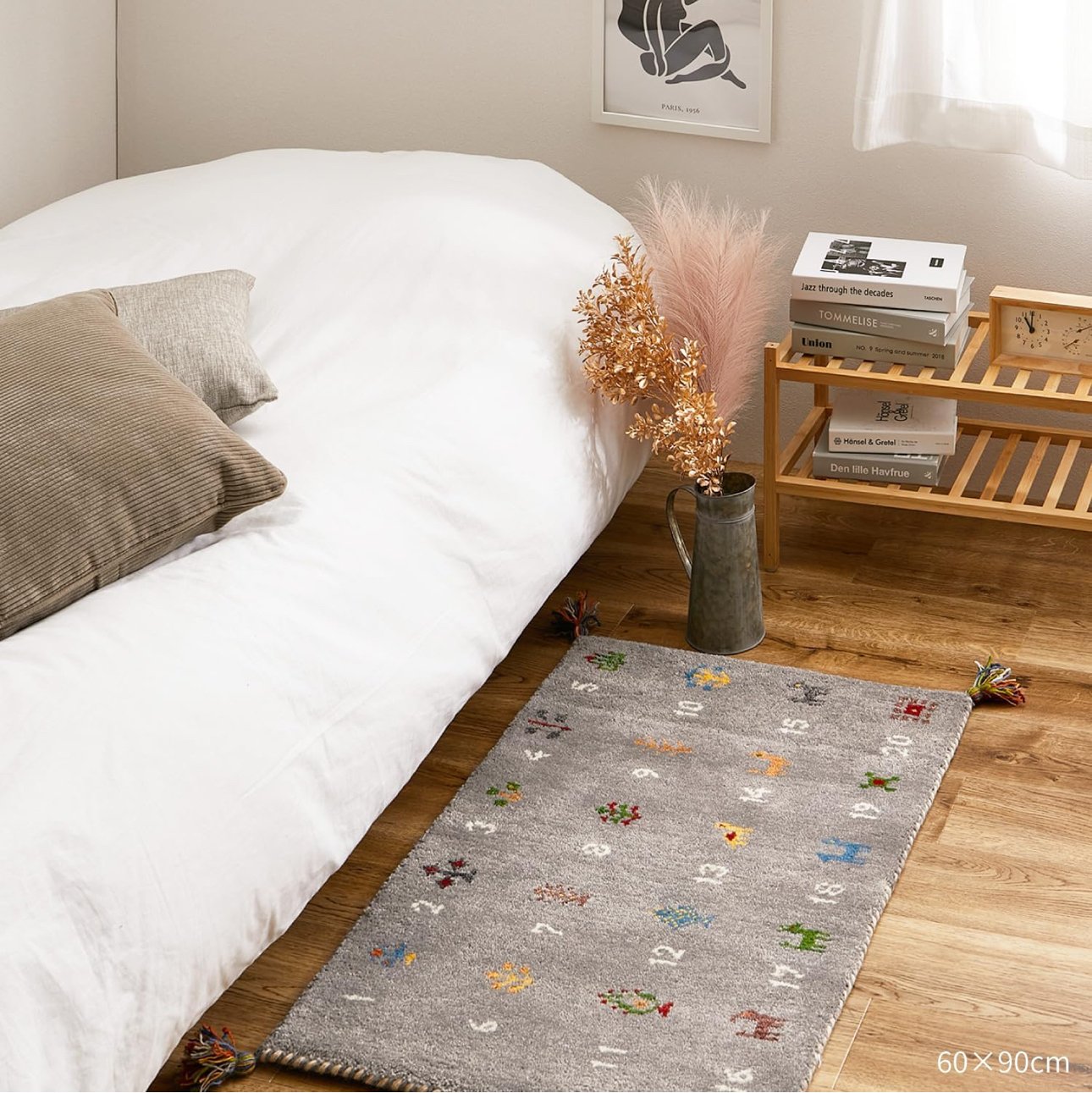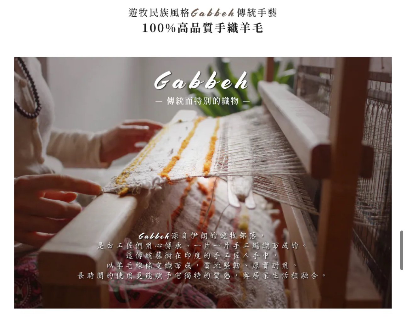 【HAGiHARA】Gabbeh印度手工編製羊毛地墊 魯菲系列 素朴日常 遊牧民族風格手織Gabbeh傳統設計, 100%高品質羊毛手工編織製作,有絕佳的隔熱性、調溼性、防污性,讓您感受到每一寸天然材質 Gabbeh的魅力。 羊毛地墊富有彈性、可以抗靜電、材質柔軟、觸感極佳,常用來裝飾住宅客廳、臥室等。 它還具有天然的抗污性和阻燃性,因此可以鋪設在任何地方,例如客廳或餐廳。 遊牧民族風格手織Gabbeh傳統設計, 100%高品質羊毛手工編織製作 有絕佳的隔熱性、調溼性、防污性,讓您感受到每一寸天然材質 Gabbeh的魅力。 羊毛地墊富有彈性、可以抗靜電、材質柔軟、觸感極佳,常用來裝飾住宅客廳、臥室等。 它還具有天然的抗污性和阻燃性,因此可以鋪設在任何地方,例如客廳或餐廳。 ■Gabbeh地墊是以來自遊牧民族日常生活的樸素美麗的傳統花紋與圖案為設計,每款皆由手工編織製成,獨一無二。 ■材質以100%高品質羊毛材質,厚實絨毛觸感,柔軟舒適,隔熱性、調溼性、防污性佳,十分耐用且吸音,適合放置於玄關、客廳或臥室等。 ■除了傳統純樸花紋,Gabbeh地墊也有充滿俏皮感的設計,可選擇最適合自己的款式。 ■每張地墊皆由手工編製而成,因此尺寸、形狀、顏色可能略有不同。 ■尺寸: 見附圖 ■材質: 100%羊毛 ■絨毛長約0.5cm、總厚度約1.5cm ■全手工編織,尺寸略有些微誤差。 ■使用全羊毛製作,少量絨毛附著。 ■日本企劃 印度製 * 由於本產品為手工製作,可能與顯示的尺寸略有不同。 * 為防止發霉,請偶爾在通風良好的陰涼處晾乾。 * 勿長時間暴露在陽光直射或光線下。 推薦用於玄關。五顏六色的瓷磚圖案照亮了入口。 100%羊毛,冬暖夏涼 羊毛有一層含有大量空氣的層。導熱率極低。 所以到了夏天可以阻擋酷熱。 冬天可以阻擋冷空氣 讓你一年四季都可以舒適地度過。 如果放在床邊下,冬天會阻隔地板的冰涼,夏天會減少赤腳出汗的粘膩感 讓你舒舒服服地開始新的一天。 推薦用於餐廳,因為它很難弄髒 一般會認為在廚房使用容易弄髒 但由於羊毛含有大量脂肪 纖維被塞得很緊,污垢不容易進入,因此通常可以使用吸塵器就能清除表面的灰塵和污垢。 天然材料和手工編織獨有的溫暖質感。從染色到編織,印度工匠精心完成。 編織是通過一種稱為手工打結的方法完成的在這種方法中,緯紗被手工一根一根地繫在經線上。 因為每一件都是手工編織的,每一張都不一樣。 即使是同樣的圖案或花紋,表情也略有不同,這也是其特色之一。
