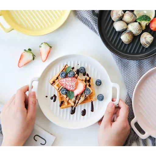 北歐風格清新陶瓷雙耳盤 🌸條紋糖果色食物盤 🌿雙耳設計、方便拿取 🌷可入微波爐、洗碗碟機 材質:陶瓷 規格:大號(直徑約23.5cm),小號(直徑約20cm) 產地:中國