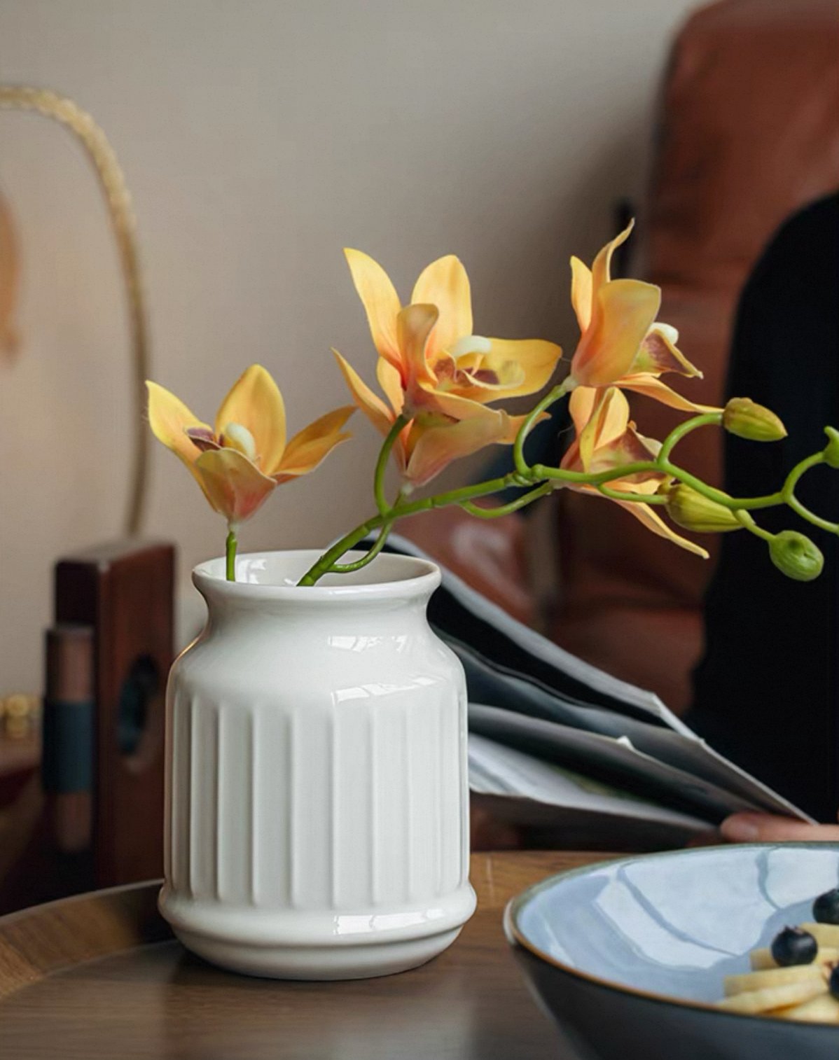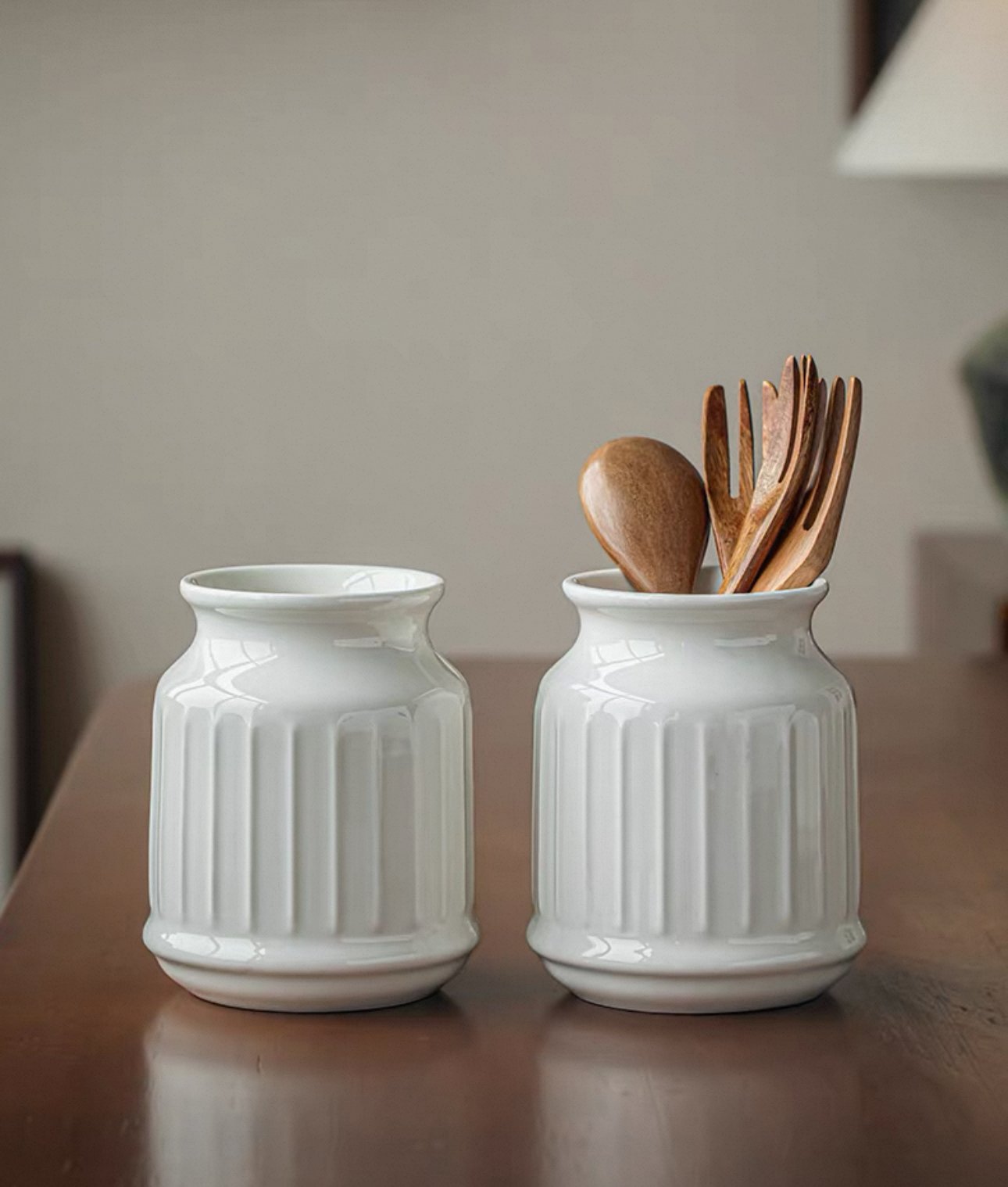 復古簡約竪紋陶瓷收納罐 🌿復古設計,亮面釉面,浮雕工藝 🌷簡約時尚,增添生活美感 🌻亮面易於清潔 尺寸:口徑約8cm,高12.5cm,底部7.5cm 產地:中國 材質:陶瓷
