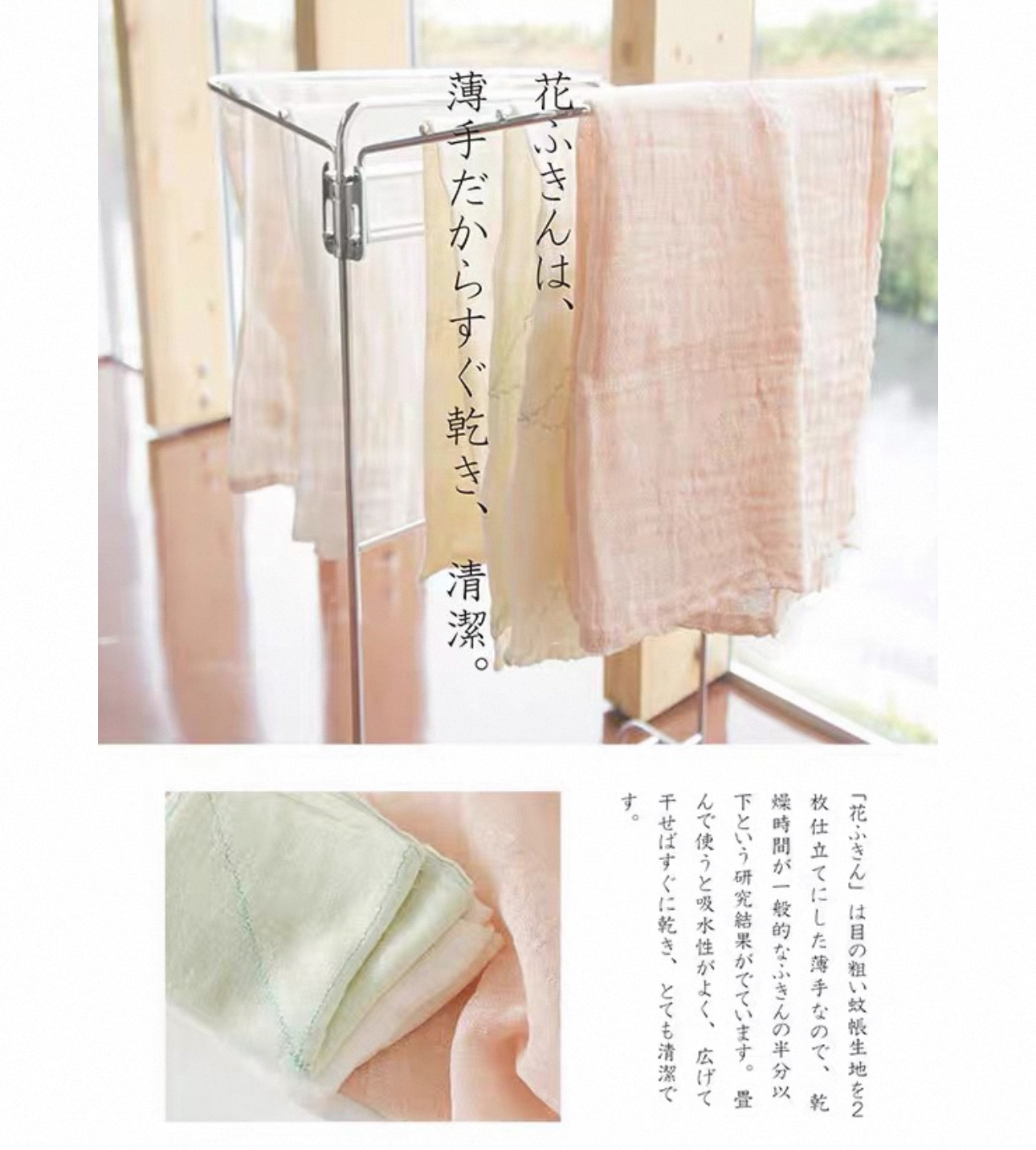 日本多用途全綿百潔布 🇯🇵日本製 🌸精心編織的網紗人造絲材質 👍五層棉紗連縫制作 🌷質地柔軟、蓬鬆、快乾 尺寸:30x40cm 生產國:日本 材質:棉