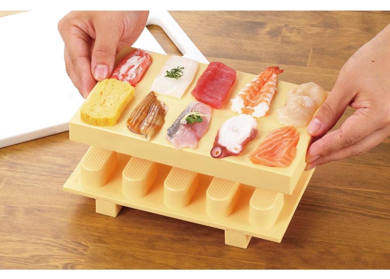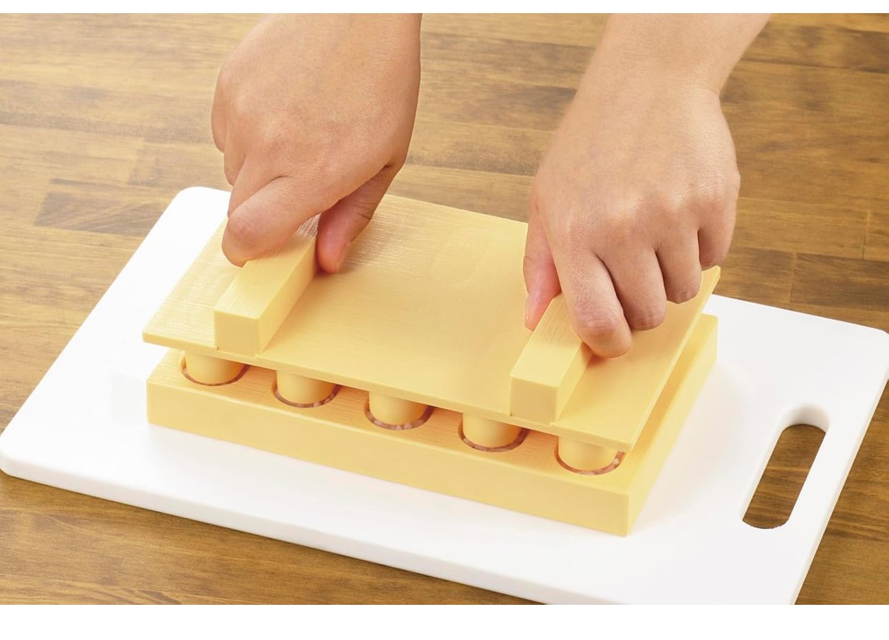 日本製寿司押型模具CH-2011 🇯🇵日本製 🌿 簡易輕鬆製作飯團壽司 🌷採用雙層壓紋加工,不會粘飯 🌻可一次製作10件壽司 * 尺寸:200×122×44毫米 * 產地:日本 * 材質:聚丙烯 耐熱溫度120℃/耐冷溫度−20℃ YouTube: https://youtu.be/pb6ijUfxSAI