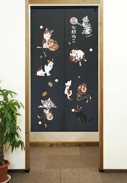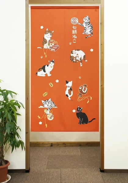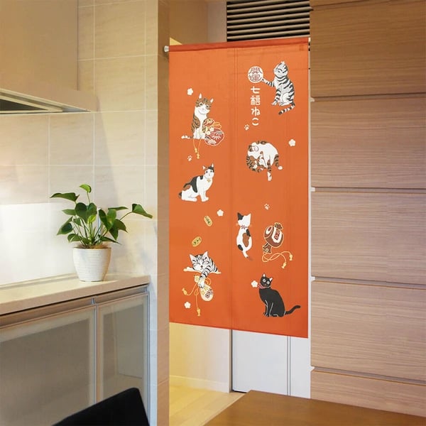日本製 七福貓可剪裁門簾