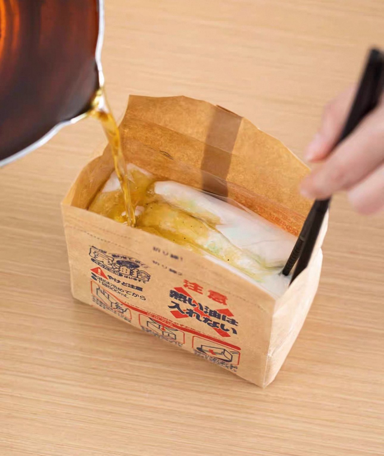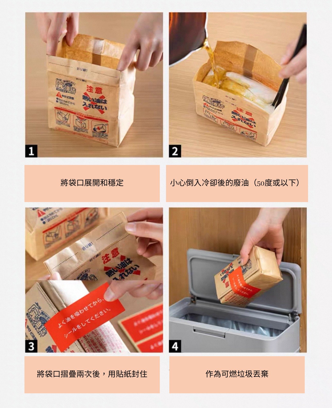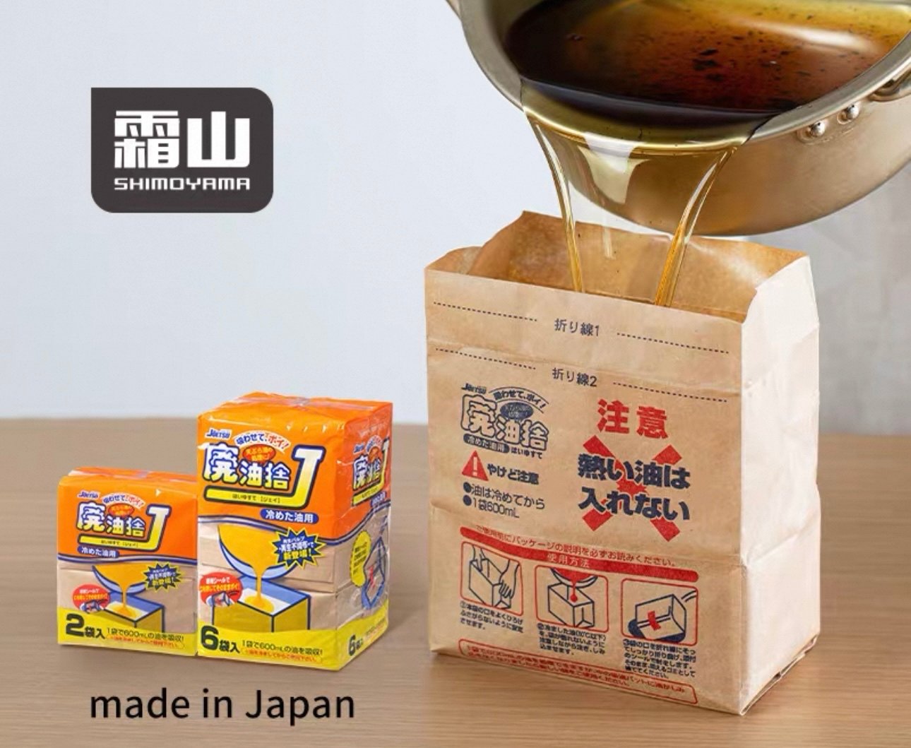 日本進口廢油處理袋 🇯🇵日本製 🌿用於處理用過的麻煩油,如天婦羅炸後的油,只需冷卻至50度或以下倒入袋中即行,一代可吸收600 ml的油,適合大部份家庭使用 🌷解決廢油的煩惱:反覆使用不健康、堆積後儲存容器難以清洗、倒入下水道滋生異味或引致堵塞 🌻大開口設計,傾倒順暢 🪴處理簡單,只需順着摺痕摺疊兩次,用貼紙密封即可 🌸袋子可立刻處理及丟掉 容量:約600ml 產地:日本 材質:再生紙張,再生無紡布