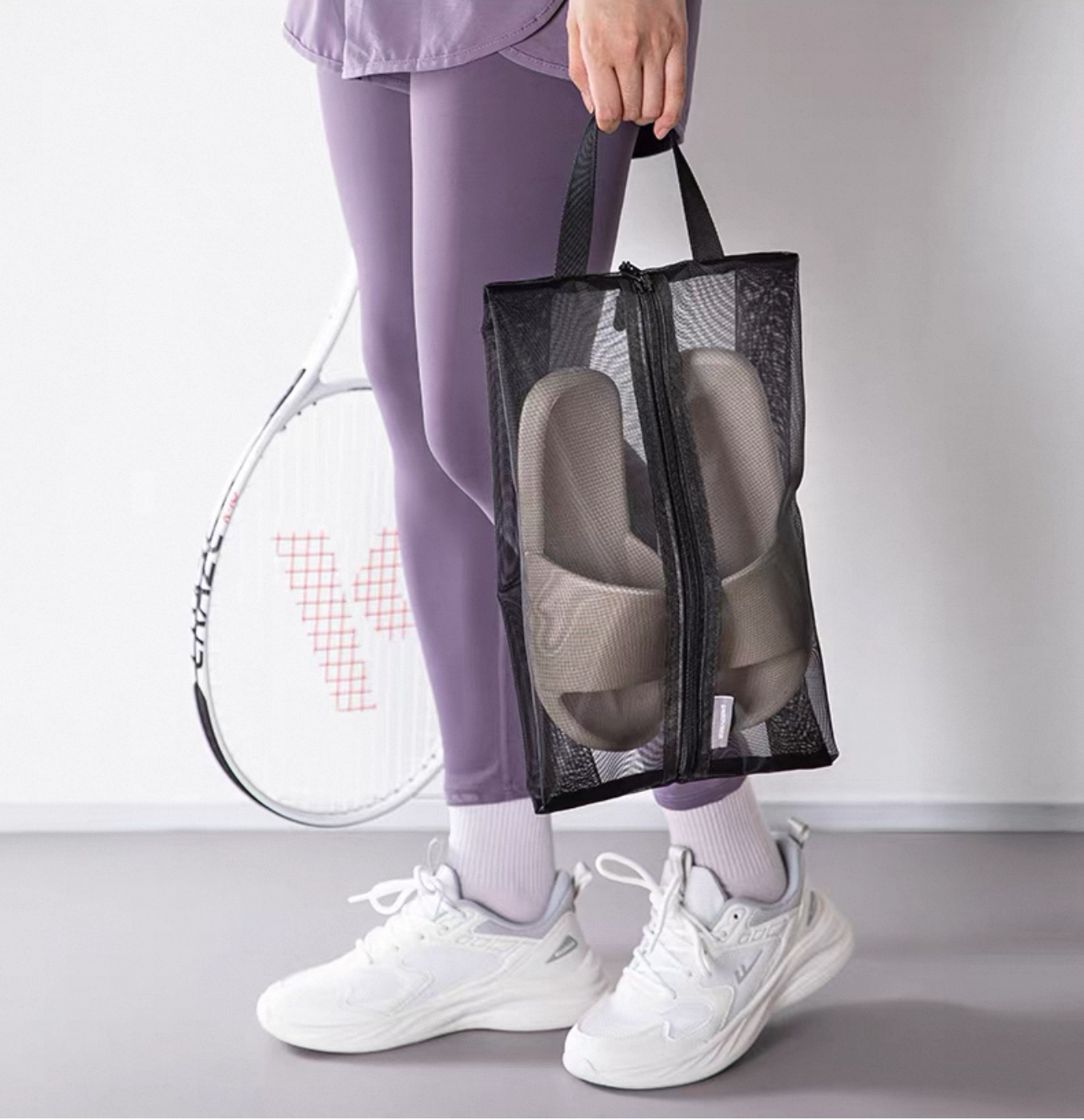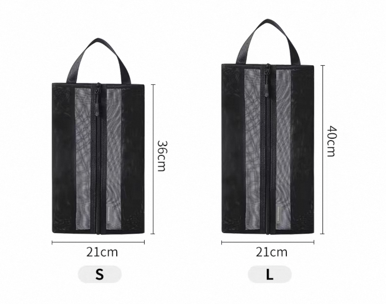 日本霜山便攜式鞋子收納袋 🇯🇵日本原裝進口 🌿大容量收納,結實耐用 🌷透明網紗,易於辨別 🌻兩種尺寸,適用廣泛 🪴開口大,易取放 🪻可清洗,保持衛生 🌸加固提手,輕便隨行 👍可容納一雙鞋子及一雙拖鞋 尺寸:見附圖 適用: 小號/39碼以下的鞋適用 大號/39碼至44碼的鞋適用 產地:中國(日本品質) 材質:尼龍