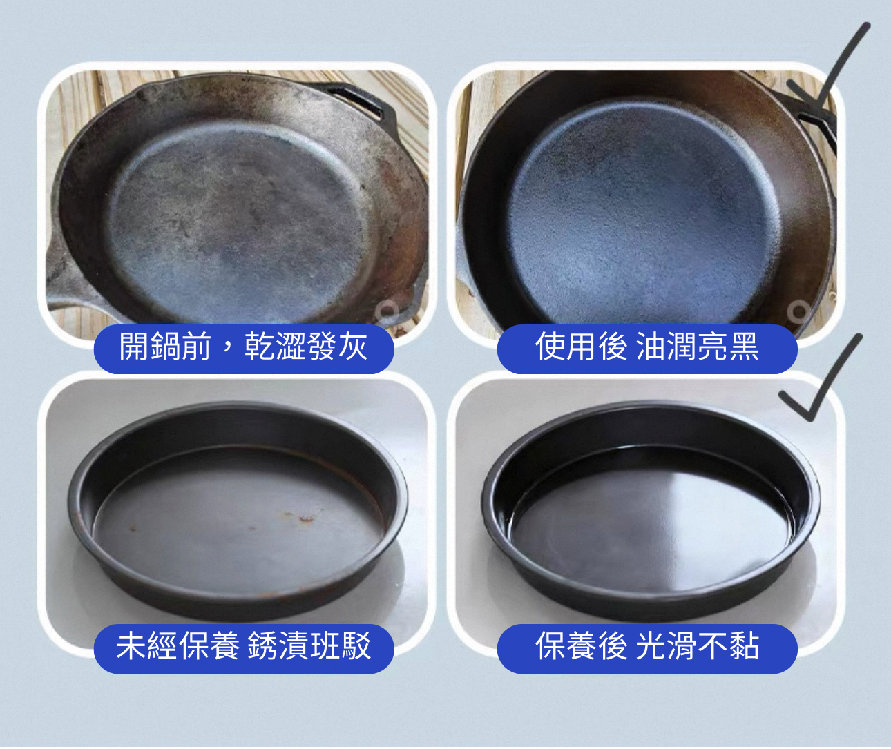 日本霜山鐵鍋/木器保養油 🇯🇵日本原裝進口 🌿成份源於自然,簡單無味,精選植物原料,在窩壁內形成保護層,每次下廚都安心無憂 🌷從開鍋到養鍋一支搞定,簡化繁瑣的開鍋流程,提供塗抹式養護方案,成為養鍋專家 🌻三部成就不粘鍋: 淨-把鐵鍋洗淨,小火烘乾水份並加熱至微微冒煙 塗-適量擠出本產品,均勻薄塗在鐵鍋的內外表面 烤-用小火烘烤4至6分鐘,轉動鍋體,形成保護油膜 🪴日常養護,防止生鏽,在鍋體形成的油膜有效隔絕空氣與水份,預防鐵鍋生鏽,延長壽命 🪻一油多用,全面保養,本產品也適用於滋潤木柄、木製砧板等,防止乾燥,爆裂,保持溫潤有質感 尺寸:見附圖 容量:120ml 產地:中國(日本品質) 成份:葵花籽油,食品級蜂蠟,甘油硬酯酸酯、單脂防酸甘油脂 適用範圍:鐵製鍋具,木製餐具用品表面 使用說明 解決鐵鍋表面養護斑駁的問題 👍如果鐵鍋只有輕微的斑駁,而且表面摸起來比較光滑,可以只進行一兩次烤油膜步驟,額外的養鍋層會層層加疊,使鍋底逐漸變得均勻 👍如果鐵鍋看起來斑駁不均,且明顯有油漬油膜剝落的痕跡,那就需要清除失敗的養鍋層,重新開始。用百潔布或鋼絲球洗刷鍋具,將鍋具表面打磨粗糙,去掉舊有不穩定的油膜後,用清潔劑和水洗淨鍋具,去除任何細小的金屬顆粒或碎屑。再進行一至三次烤油膜步驟,通常可以形成光亮的油膜層 注意:塗抹時要均勻薄塗,並擦去多餘的膏體再進行烤油膜,以防止斑駁形成 產品說明: 1. 養油膜內裏添加了天然蜂蠟,蜂蠟原料提取過程中會有一些輕微的雜質即使過濾也不能完全避免,這些微量的雜質不會影響產品本身的使用安全和效果。自然蜂蠟的流動性會受環境溫度影響,天氣較冷時,使用時,請先以熱水浸泡,方便擠出膏體 2. 申請過程中沒有辦法完全填充,產品內填充空氣以保證物品的完整運輸,因此管子體積比裝的膏體體積大,膏體淨含量為120ml