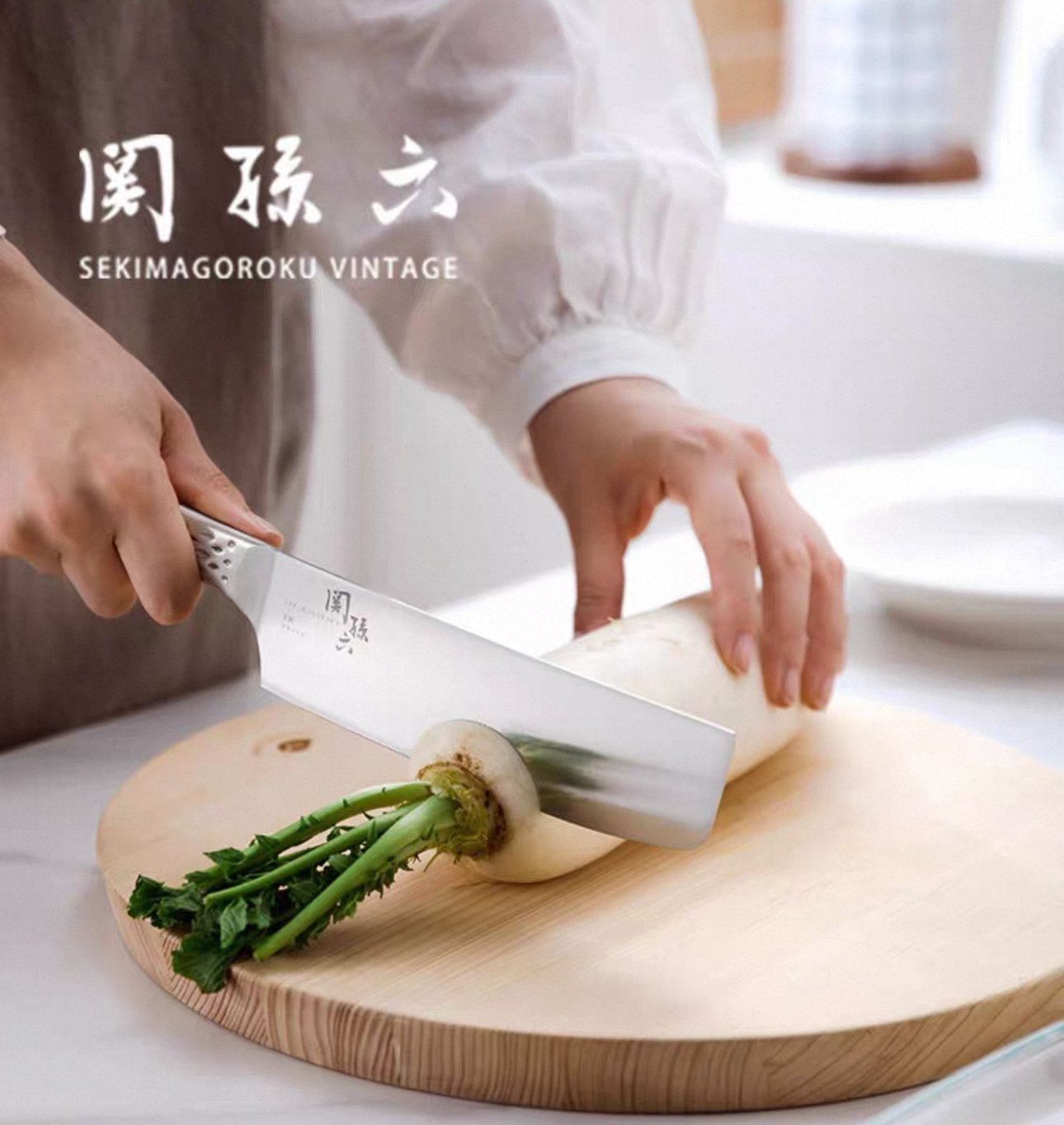 日本 KAI 關孫六匠創意中華包丁(165mm) * 日本製 * 清潔清爽的鋒利切口 *衛生的不鏽鋼製:一體成型無接縫的金屬製成,堅固性優異的規格, 清洗方便衛生 *三工藝刀片: 打磨刀刃后能順利地拋光, 小食材的切割阻止力,實現清爽鋒利的鋒利度 *手感好,手握感高的流線型手柄設計,操作性也很出色(*設計註冊第1550965號) *不鏽鋼單層材料:不易生鏽,易於保養 *可入洗碗碟機、消毒櫃 尺寸:見附圖 重量:約151g 產地:日本 右撇子左撇子兼用的菜刀。 左撇子也可以使用。 *使用后請及時清除污垢和水並乾燥 **如果保留污垢和水,可能會導致生鏽或變色