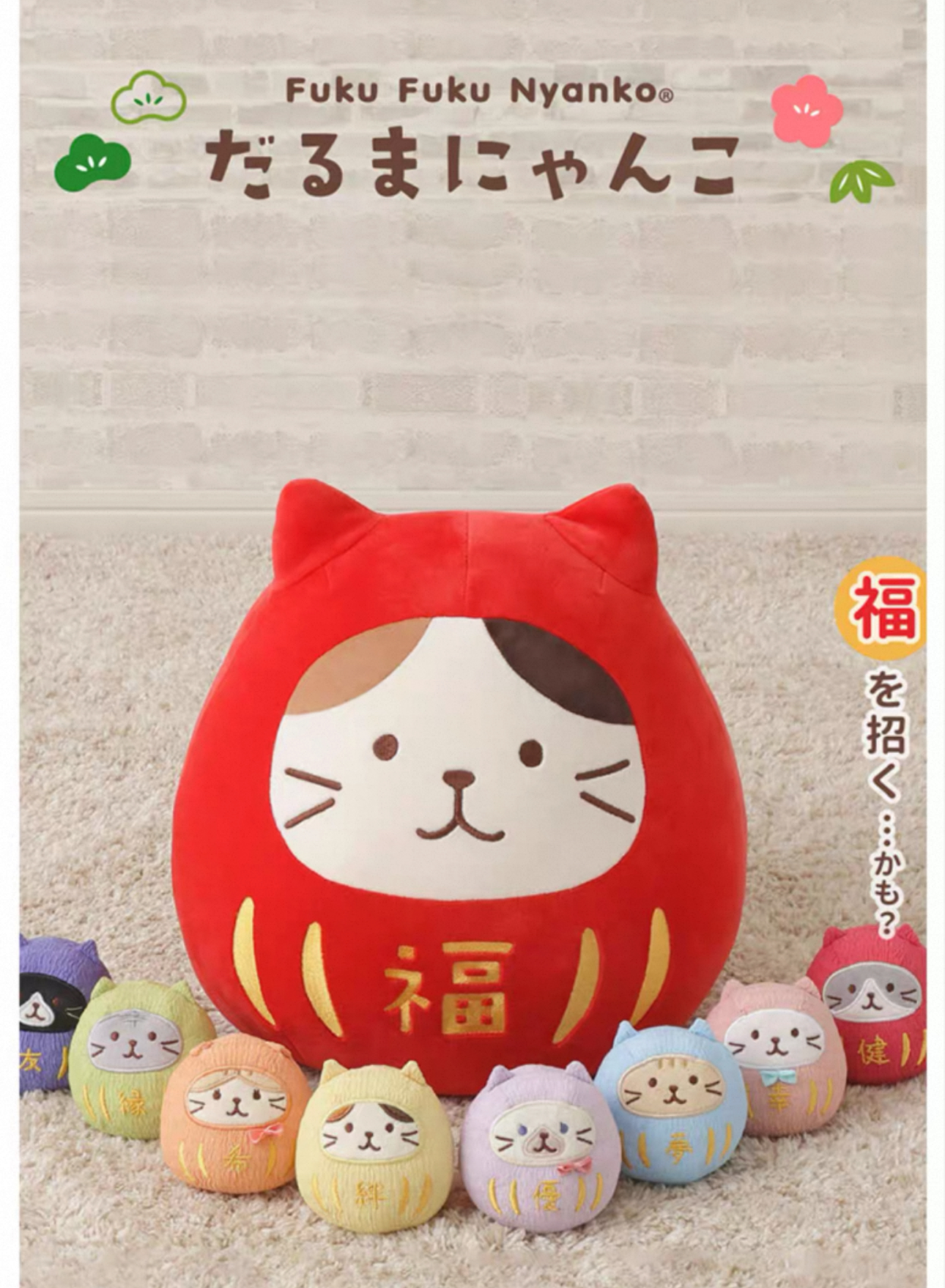 日本Hapins祈福貓咪不倒翁 🇯🇵日本原裝進口 🌿來自東京的貓咪設計 尺寸: 小不倒翁/約8.5 x 8cm 大不倒翁/約32 x 30cm 產地:中國(日本品質) 材質:聚酯纖維