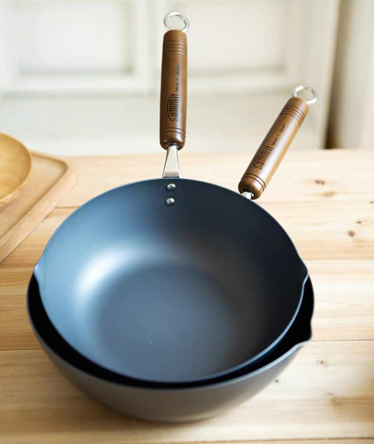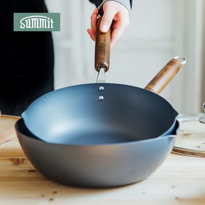 日本Summit木柄窒化鐵無塗層炒鍋(24/26/28cm)