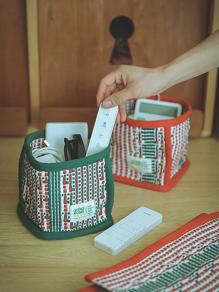 棉線編織玩具遙控器收納小筐子 🌿舒適面料,實用美觀 🌷小巧精緻,造型可愛 🌻紅綠配搭,增添節日氣氛 尺寸:13 x 13 x 14cm 產地:中國 材質:70%棉,30%滌綸 溫馨提示:快遞途中偶爾會出現壓痕,裝滿物品撐幾天即可回復原狀,敬請理解