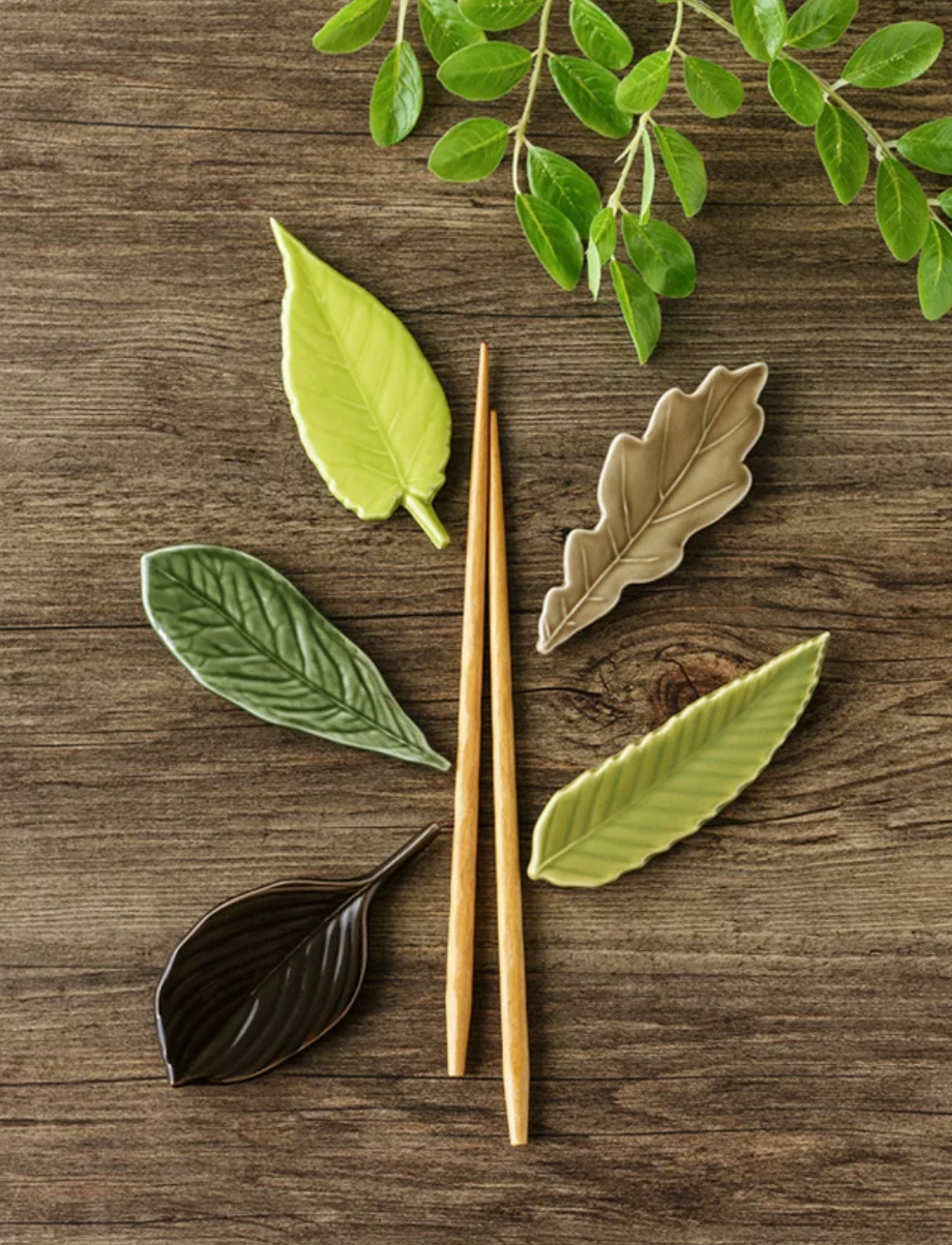 森林葉子筷子座 🌿葉片在四季中由青至黃漸漸變色,形成不同葉子色差之美 🌷不同顏色的葉子筷子座,增添餐桌四季氛圍 🪴筷子座可入洗碗碟機、消毒櫃 尺寸:見附圖 產地:中國 材質:筷子座/陶瓷,底座/竹