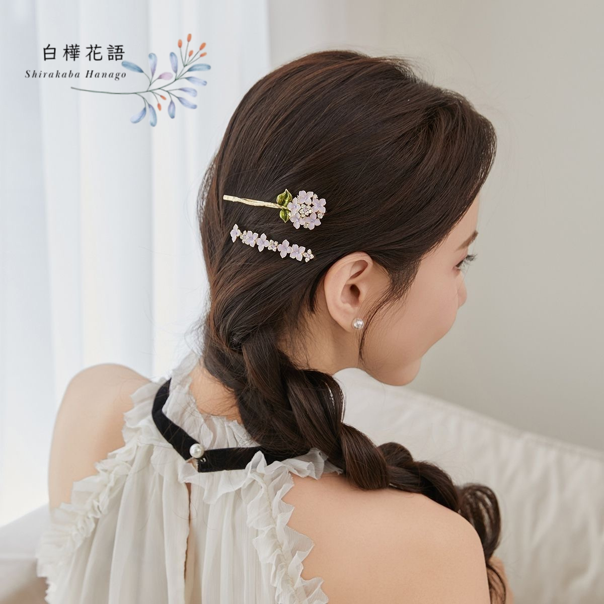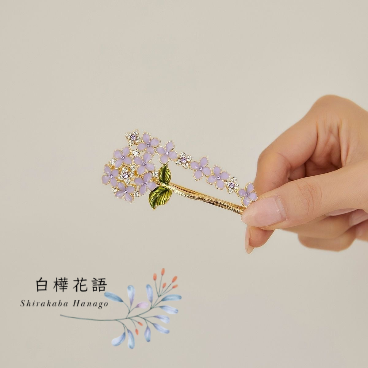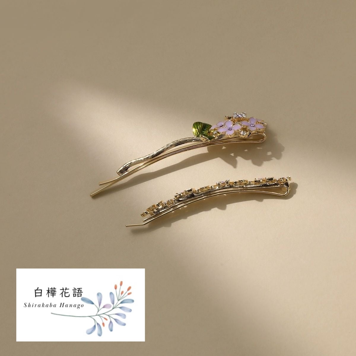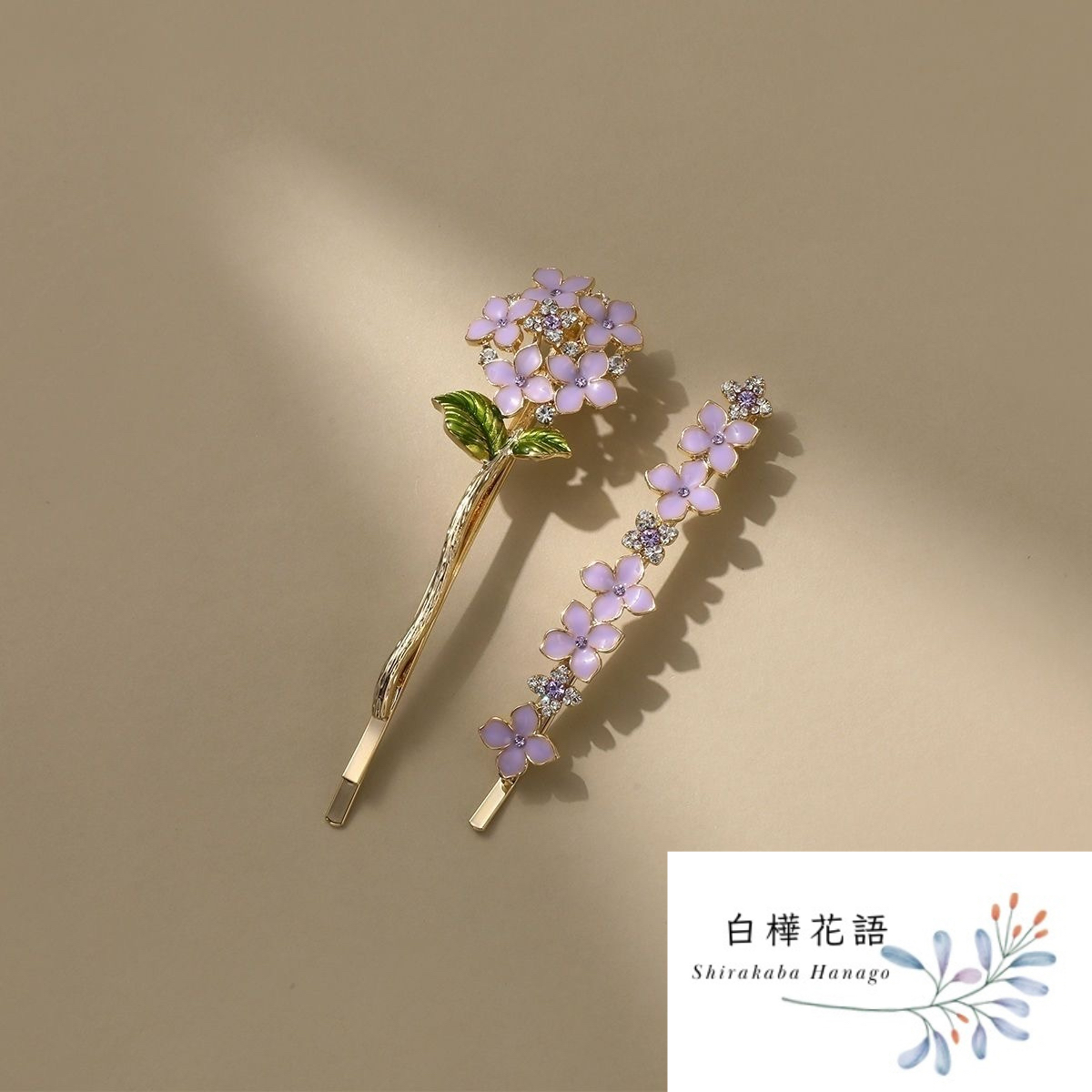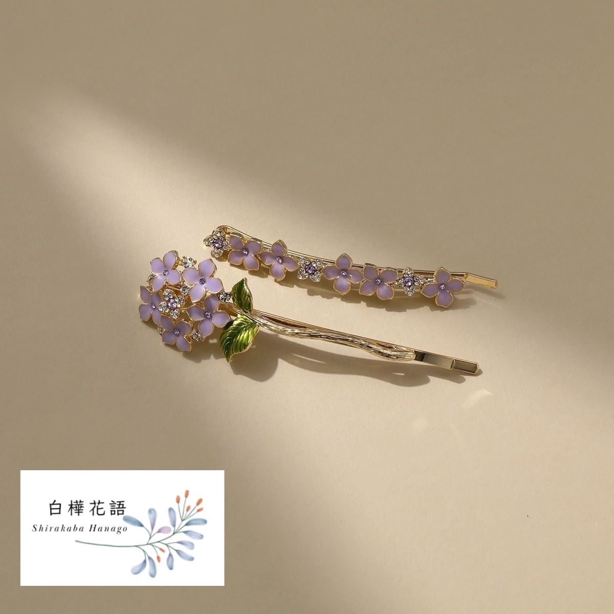 白樺花語 紫陽花髮夾套裝 🌿 The story is beautiful because of a flower that cannot be seen 🌿 尺寸: 長款/8.5 x 2.5cm 短款/7.5 x 1.1cm