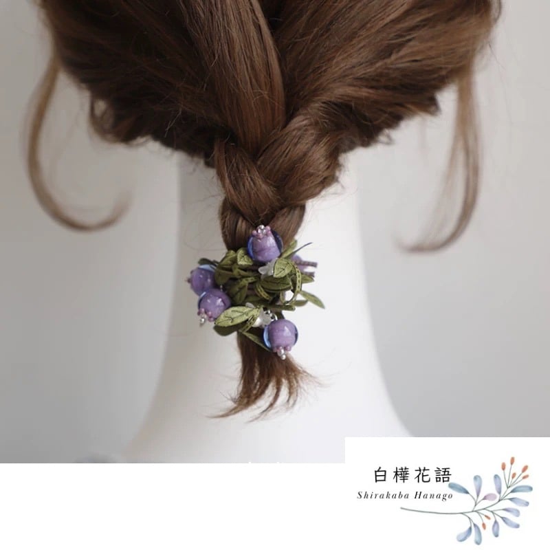 白樺花語 藍莓樹藤髮圈 🌿 The story is beautiful because of a flower that cannot be seen 🌿 材質:串珠 尺寸:直徑約6cm