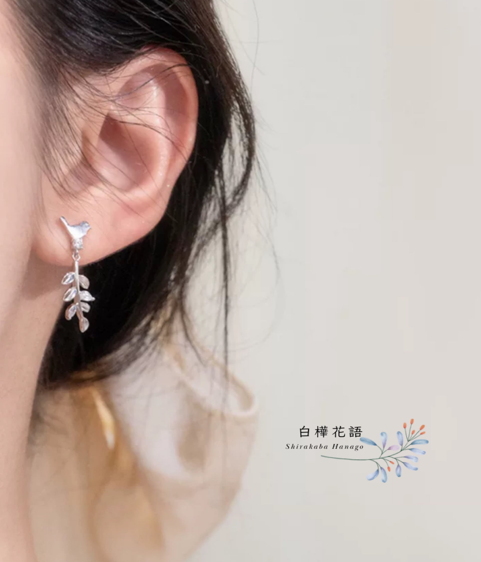 白樺花語 S925橄欖枝小鳥耳釘 🌿 The story is beautiful because of a flower that cannot be seen 🌿 🌿S925純銀針 🌸 橄欖枝小鳥,清新森系文藝氣息 尺寸:見附圖 材質:純銀針,亞加力 款式:耳釘款
