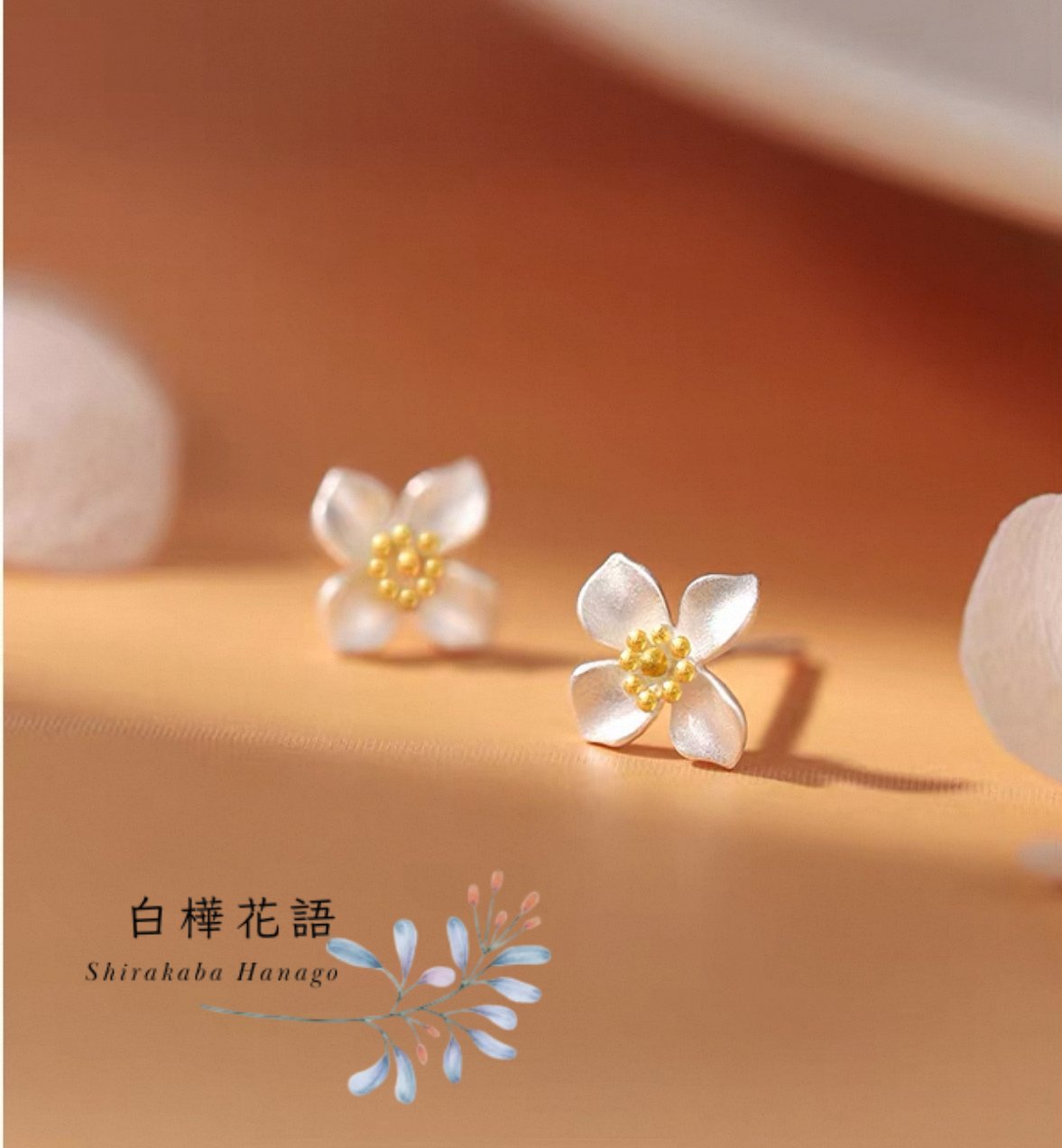 白樺花語 S925純銀梔子耳環 🌸S925純銀材質 尺寸:約6 x 6mm 材質:純銀 款式:耳釘
