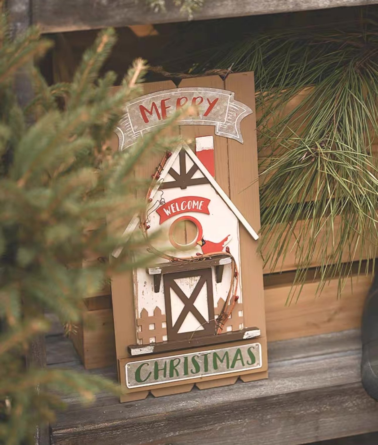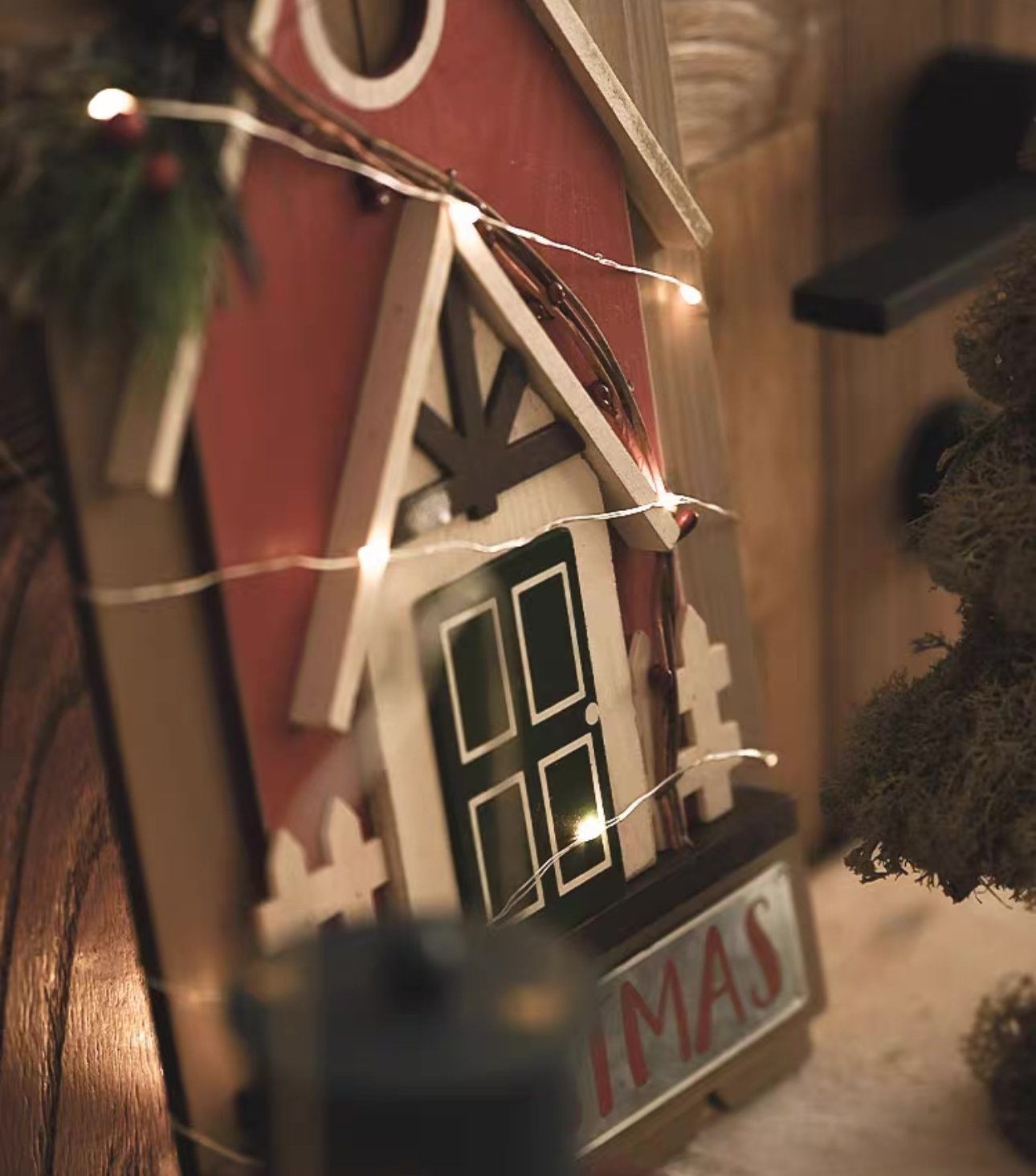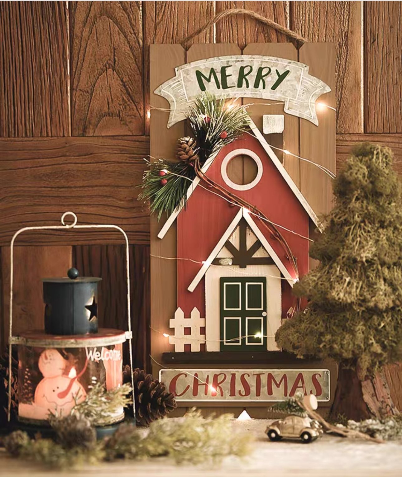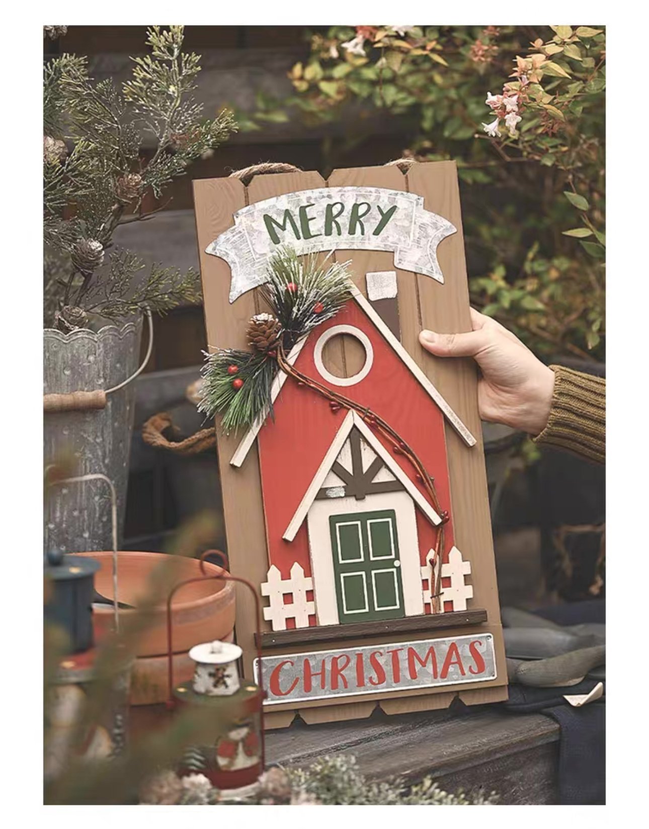 聖誕復古木質房子裝飾掛牌 🌿聖誕樹上燈兒眨著眼,手心裏果兒紅着臉,‘平安,願你平安!’思念的人輕聲呢喃 🌷給人溫暖的節日,當然也需要溫暖的裝飾品,配搭在熱鬧的節日氛圍中,獨有一份生動之趣之感 🌻教堂木門款掛飾,紅與綠作為聖誕的經典色彩,熱烈的紅色配以富有心機的綠色作為點綴,碰撞出聖誕的色彩盛宴。點綴着松針、漿果,天然的質樸感 尺寸:見附圖 產地:中國 材質:天然造舊木,纖維板 另備有: LED纏繞裝飾小燈串/電子蠟燭 https://www.rakkuzakka.store/i/Xlvd0NgAA * 手工塗色打磨,會有一些手工製作的痕跡,快遞運輸顛簸,可能會有小部件跌落的情況,介意者請謹慎購買,敬請理解