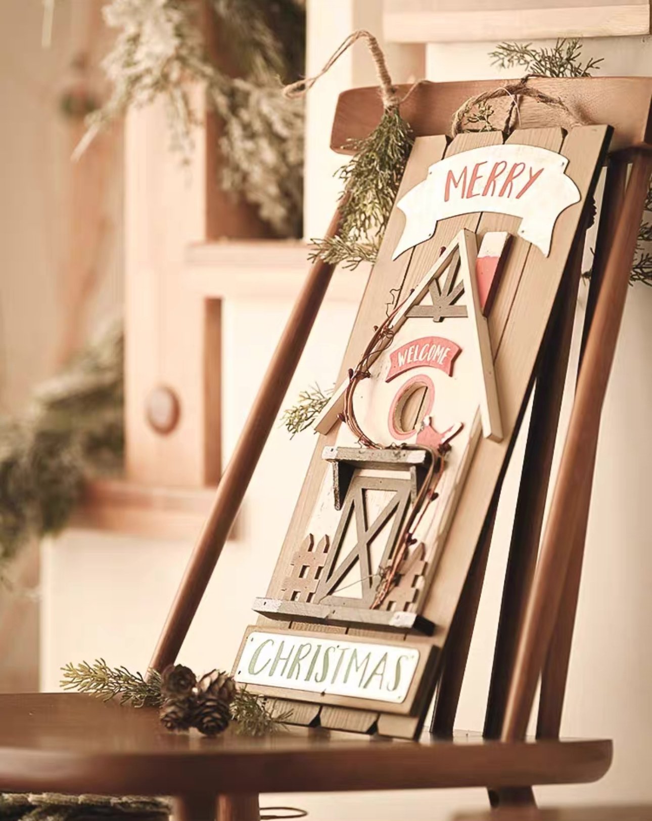 聖誕復古木質房子裝飾掛牌