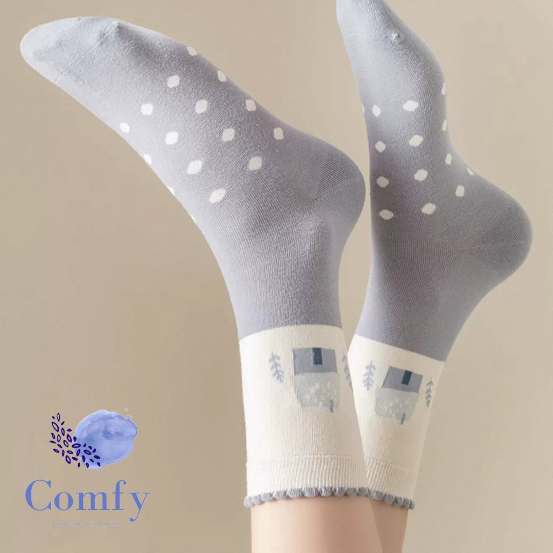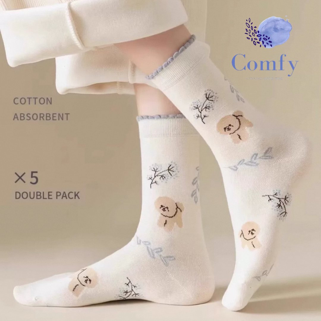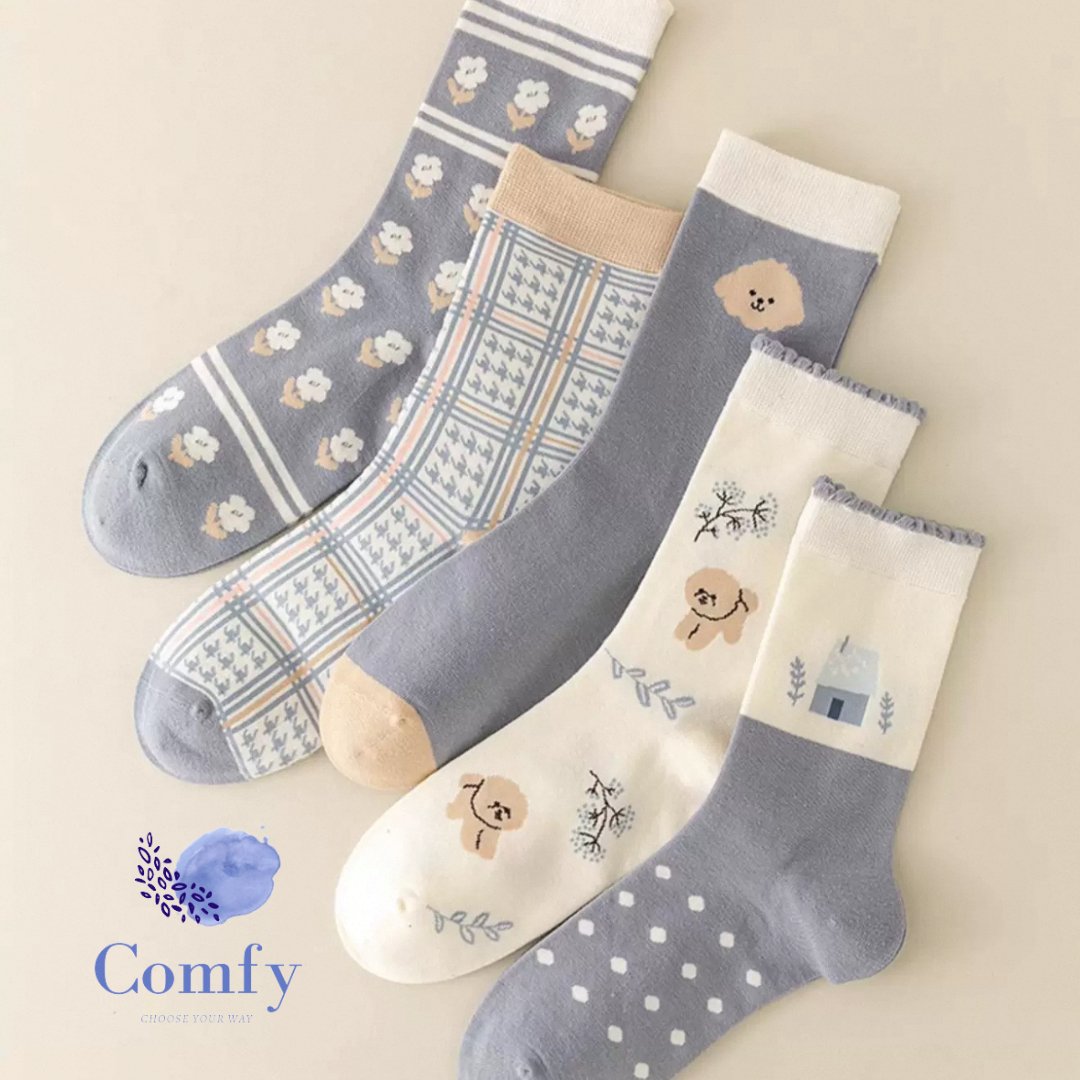 Comfy 森林萌犬中筒襪 🌿Choose your way, Be comfort🌿 尺寸:女士尺碼(約22-25厘米) 材質:棉