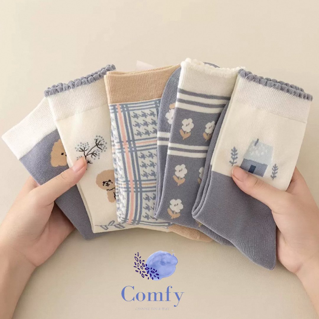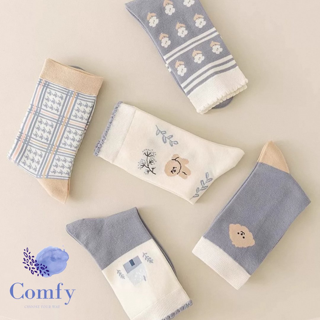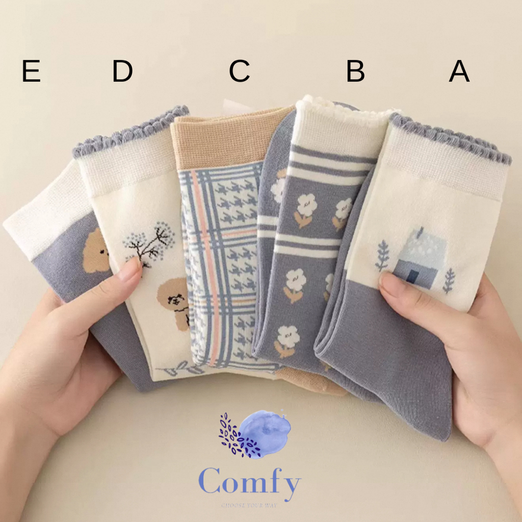 Comfy 森林萌犬中筒襪 🌿Choose your way, Be comfort🌿 尺寸:女士尺碼(約22-25厘米) 材質:棉