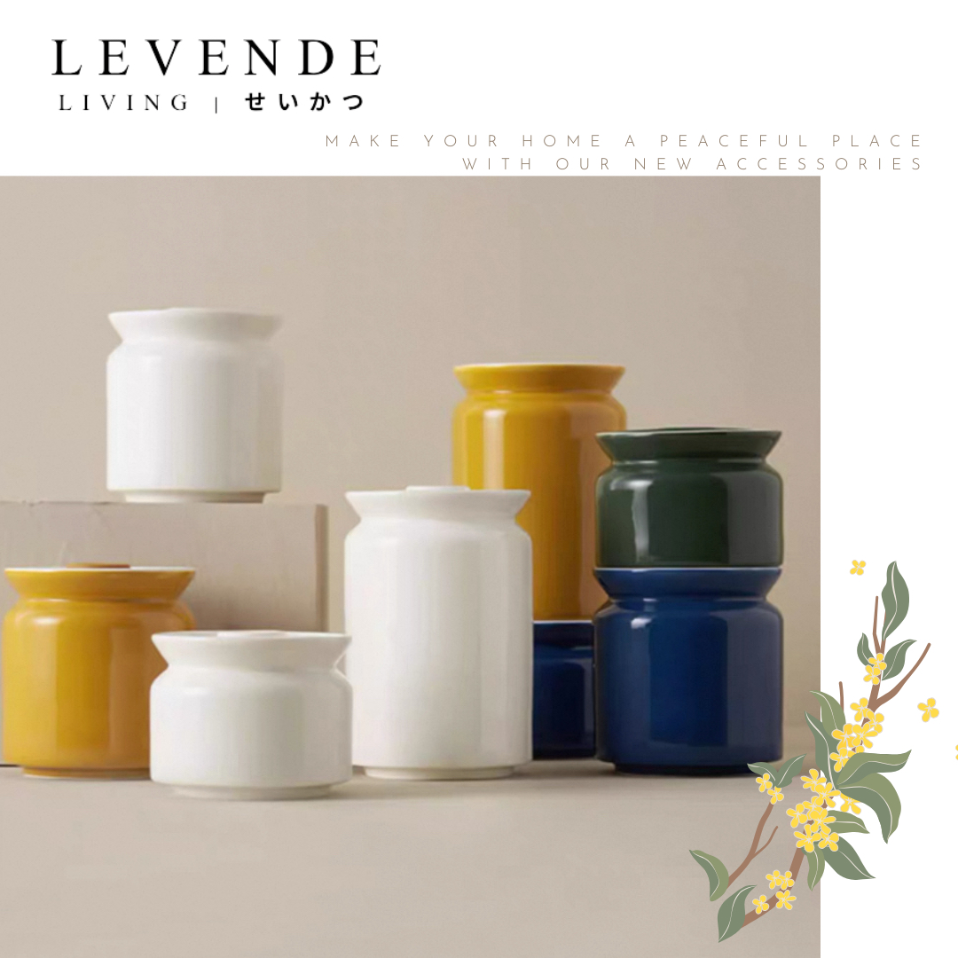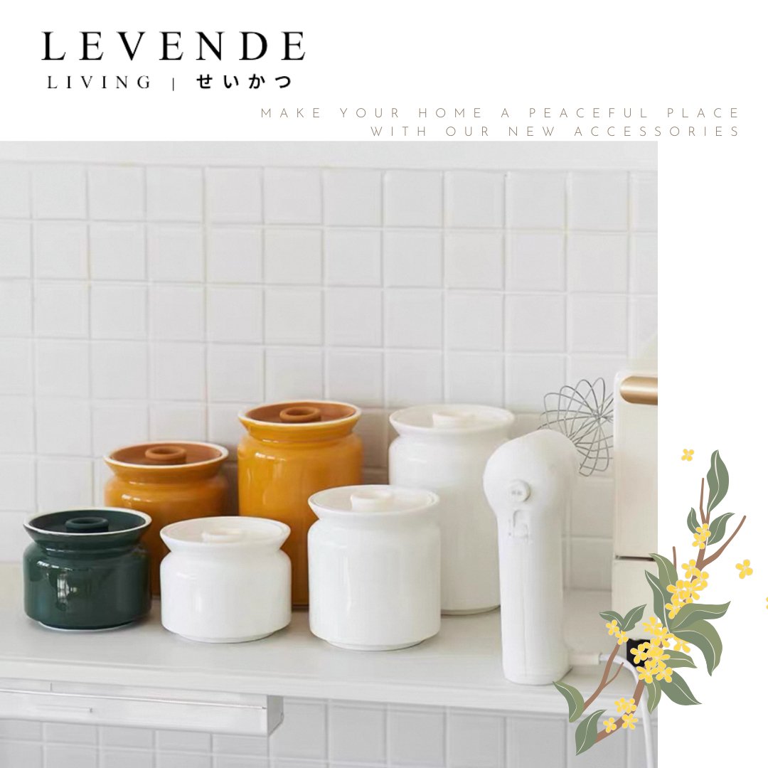 Levende 簡約密封陶瓷罐 🌿密封硅膠圈,保鮮存氣 🌷一罐多用,滿足不同需求 🌻耐300度高溫 尺寸:見附圖 產地:中國(Levende連携商品) 材質:陶瓷,硅膠 Living | LEVENDE | せいかつ ~Lighten your simple happiness with LEVENDE life~