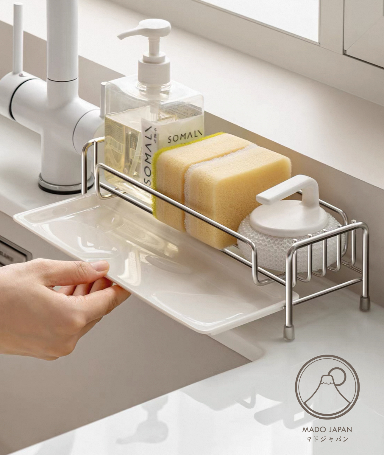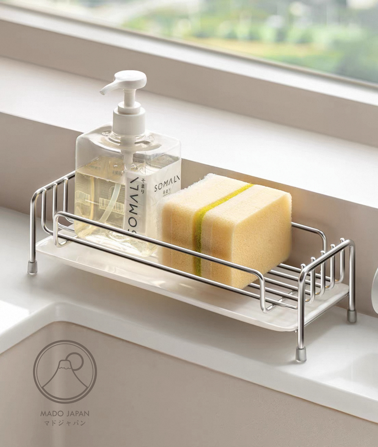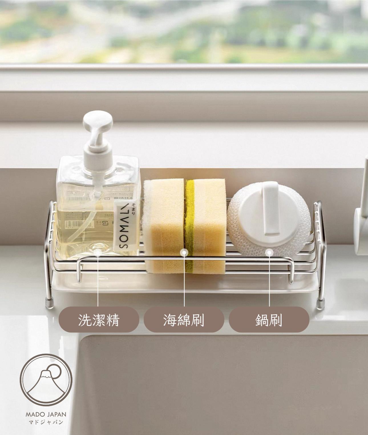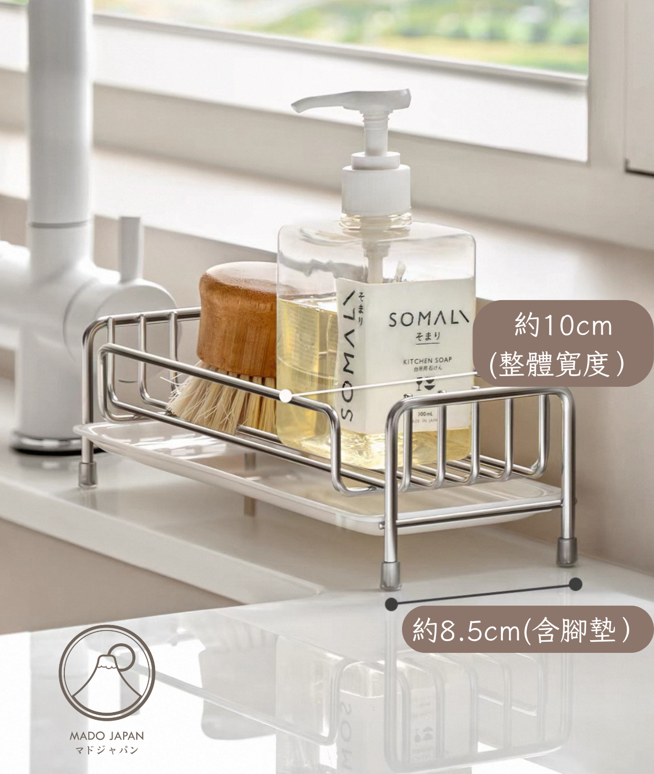 Mado JP 不鏽鋼海綿瀝水架 🌿容量適宜,方便收納 🌻可拆卸底座設計,方便清潔 🌸窄型小巧,可靈活放置 🪴實心304不鏽鋼,簡約耐用 尺寸:寛26.5cm,腳深8.5cm,高7.3cm,內深約10cm 產地:中國(Mado JP連携商品) 材質:不鏽鋼 透過Mado JP連携,把日系生活風格帶回家 🥰