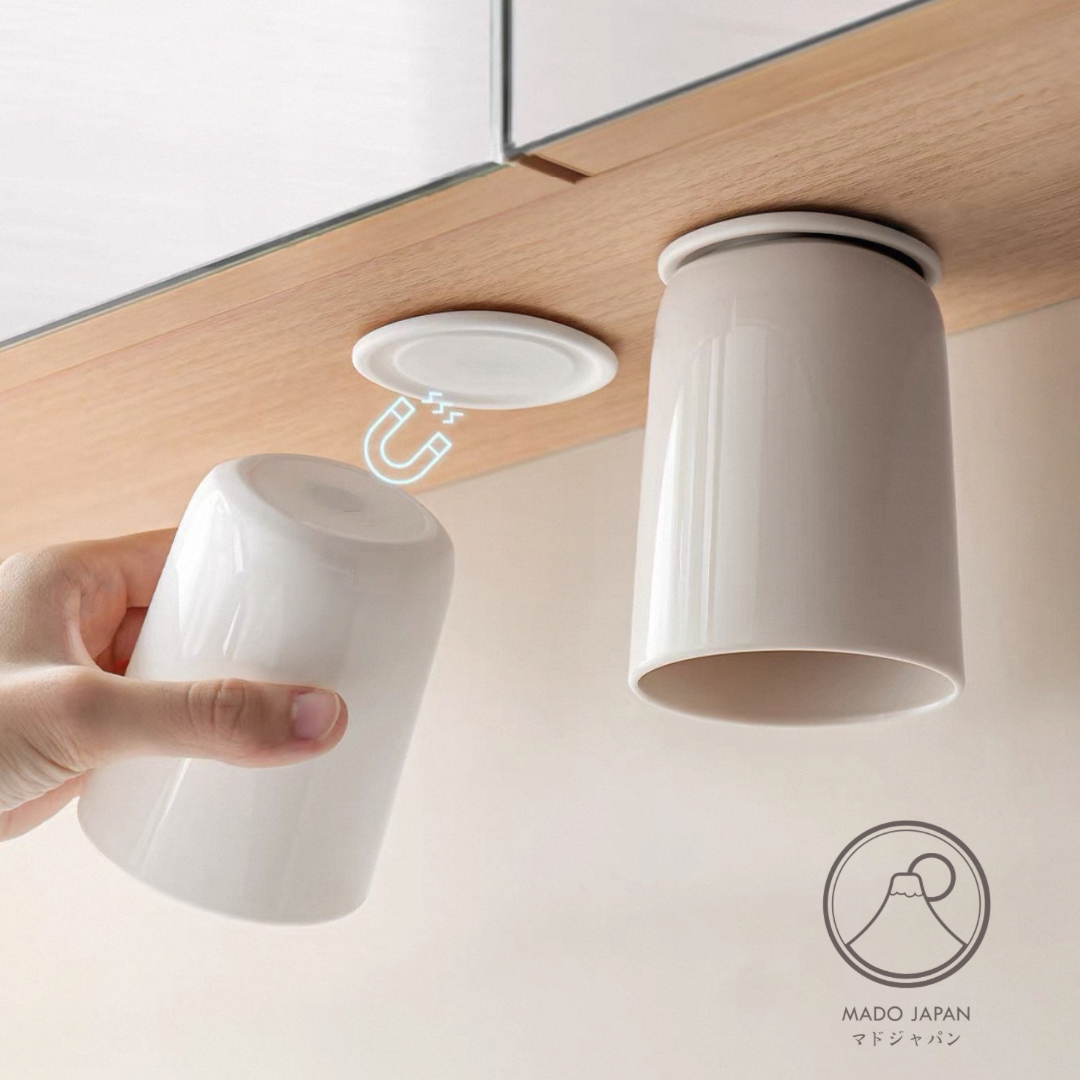 Mado JP 磁吸倒掛漱口杯 🌿免打孔設計,安裝簡易 🌻隱藏式磁吸設計,方便縣掛收納與風亁 🌸可安裝在鏡櫃下,節省空間 尺寸: 磁吸漱口杯/磁吸背板直徑約6cm,含背板高10 cm,杯口直徑約7.3 cm 免打孔牙刷架/見附圖 產地:中國(Mado JP連携商品) 材質:PP,ABS 透過Mado JP連携,把日系生活風格帶回家 🥰