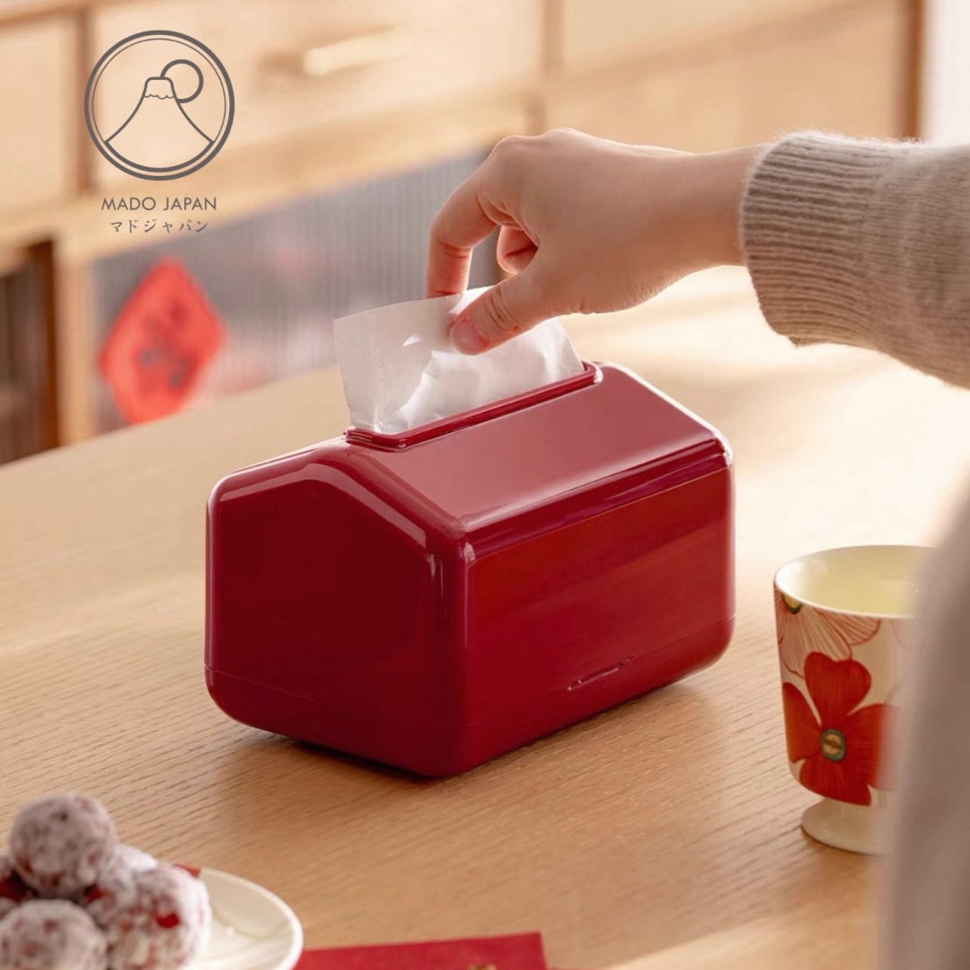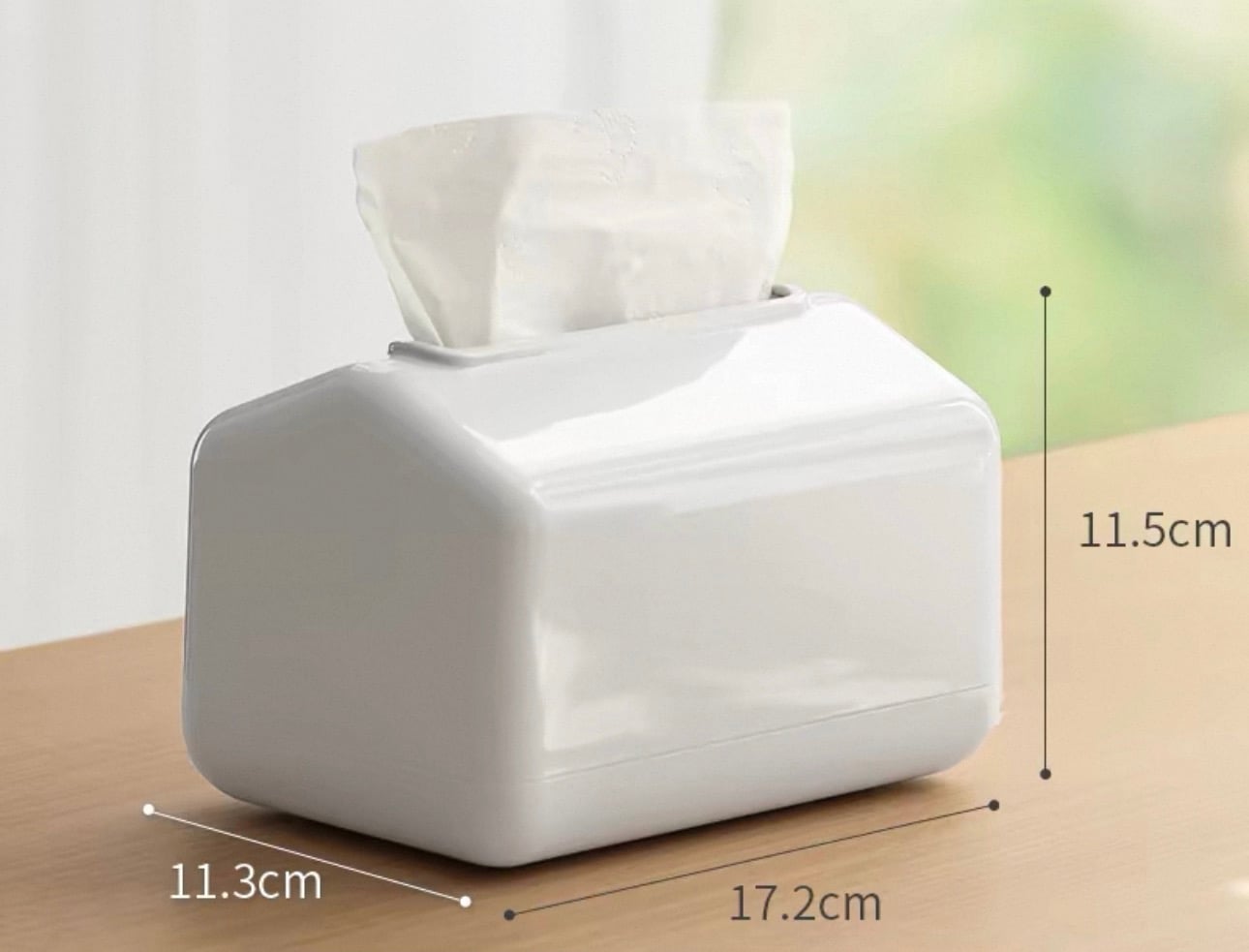 Mado JP 簡約屋型紙巾盒 🌿彈簧伸縮,輕鬆抽紙 🌷三角結構,加寛出紙口 尺寸:見附圖 適用紙巾尺寸:16×10×8 cm 產地:中國(Mado JP連携商品) 材質:ABS 透過Mado JP連携,把日系生活風格帶回家 🥰
