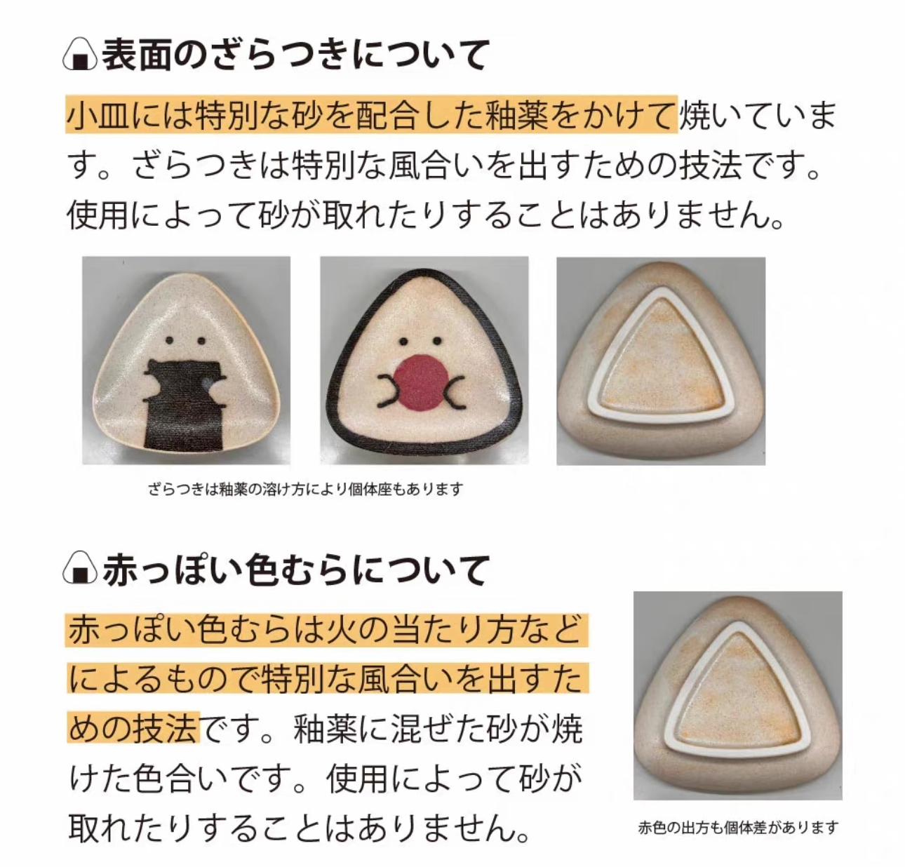 日本製可愛美濃燒飯團圖案餐具 🇯🇵日本製 🌿傳統日本美濃燒工藝 尺寸: 筷子/長度約23 cm 筷子架/邊長約3.5 x 高約0.8cm 豆皿/邊長約9.0 x 高約1.7cm 產地:日本 材質: 筷子、筷子架/天然木+樹脂塗層 豆皿/陶瓷