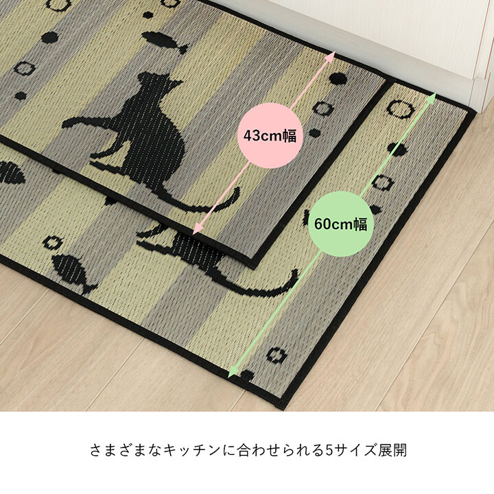 日本製榻榻米可愛貓咪日式廚房墊 *日本製 *無需水洗榻榻米廚房墊 *與合成廚房墊相比耐髒和抗汚 *即使是小碎片也可以通過簡單地用掃帚或吸塵機來清除 *燈心草本身所含的油能排斥污垢,因此無需清洗,可長期使用 *由於它是一種不易燃燒的材料,因此即使在使用火的廚房中也可以安全使用 *消除了廚房墊子“洗起來費時”、“防滑難”、“保養麻煩”等所有對廚房地墊的不滿 *由於燈芯草也是榻榻米的一種材料,您可以感覺到彷彿站在榻榻米上 *簡單的圖案和匆忙的日式氛圍很容易與日式房間相匹配, *聚氨酯泡沫用於襯里以提供腳部緩衝 * 産品体積較大,建議選擇費用固定的 「倉庫直送」選項,購物更安心 😊 * 尺寸: 約 43 x 120 厘米 / 約 43 x 180 厘米 / 約 43 x 240 厘米 /約 60 x 240 厘米 / 約 60 x 270 厘米 產地:日本 材料:外層/燈芯草(普通編織) 里料 /聚氨酯泡沫 6mm