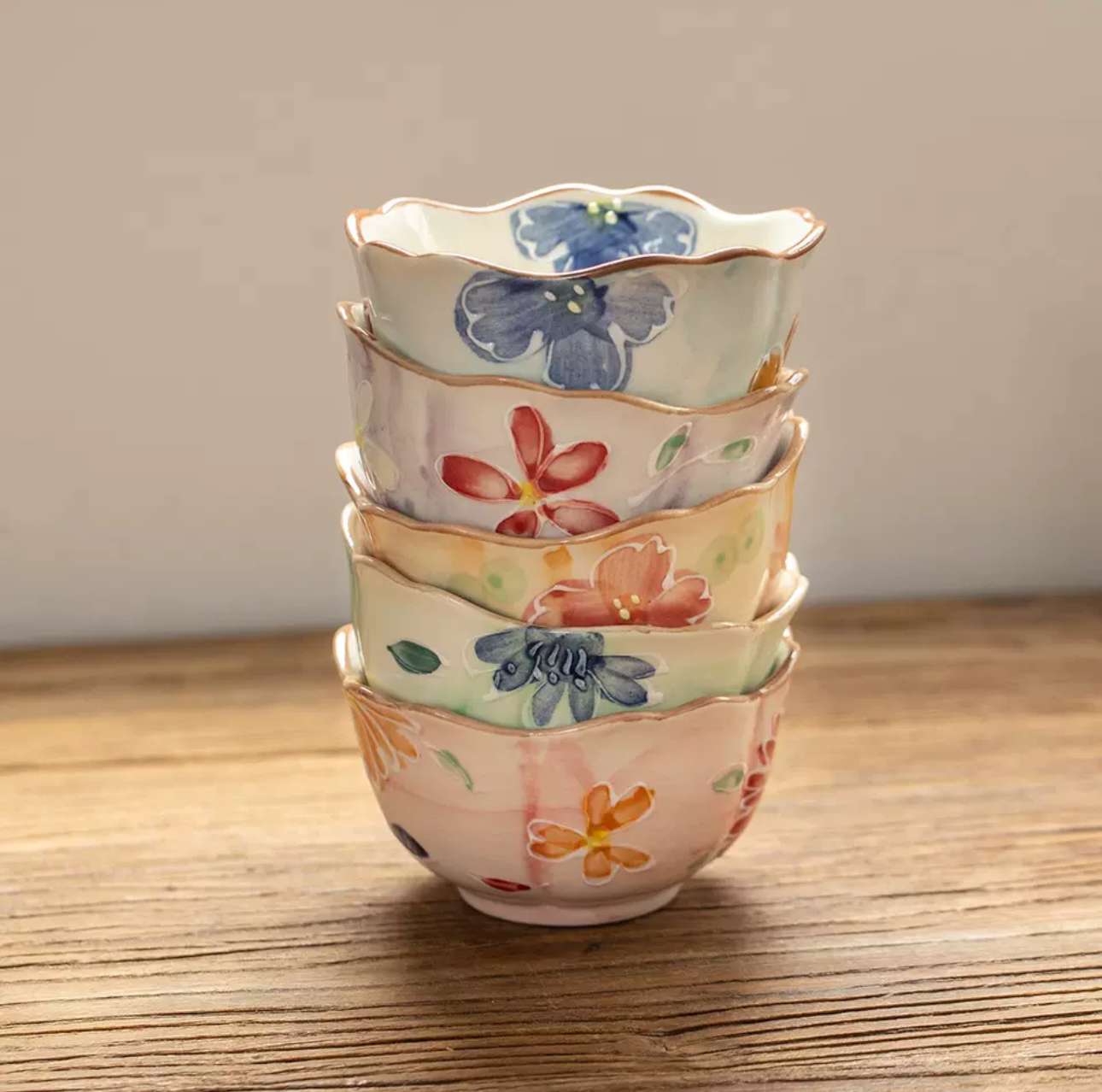 日本製瀨戶燒手繪花卉點心鉢 🇯🇵日本製 🌿日系小鉢,明媚生動,溫暖質樸 🌻邊沿起伏,波紋般生生不息,是花卉的形狀 🌷低飽和度色調,溫和有質感 🪴器形小巧,適合盛放小料、水果、甜點…等 🪻適用於微波爐、洗碗碟機、消毒櫃 尺寸:直徑約9.5cm x 高5cm 產地:日本 材質:陶瓷