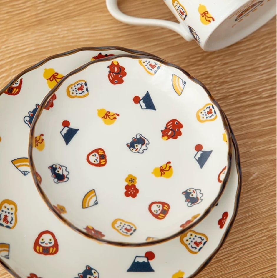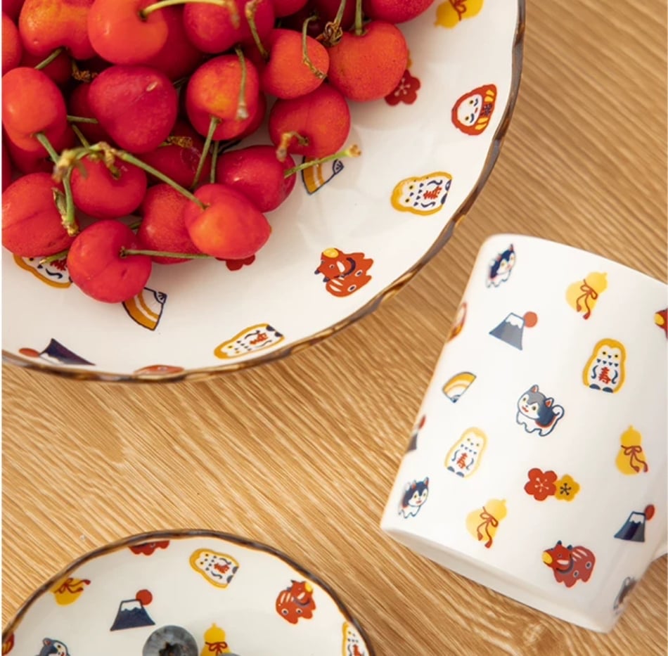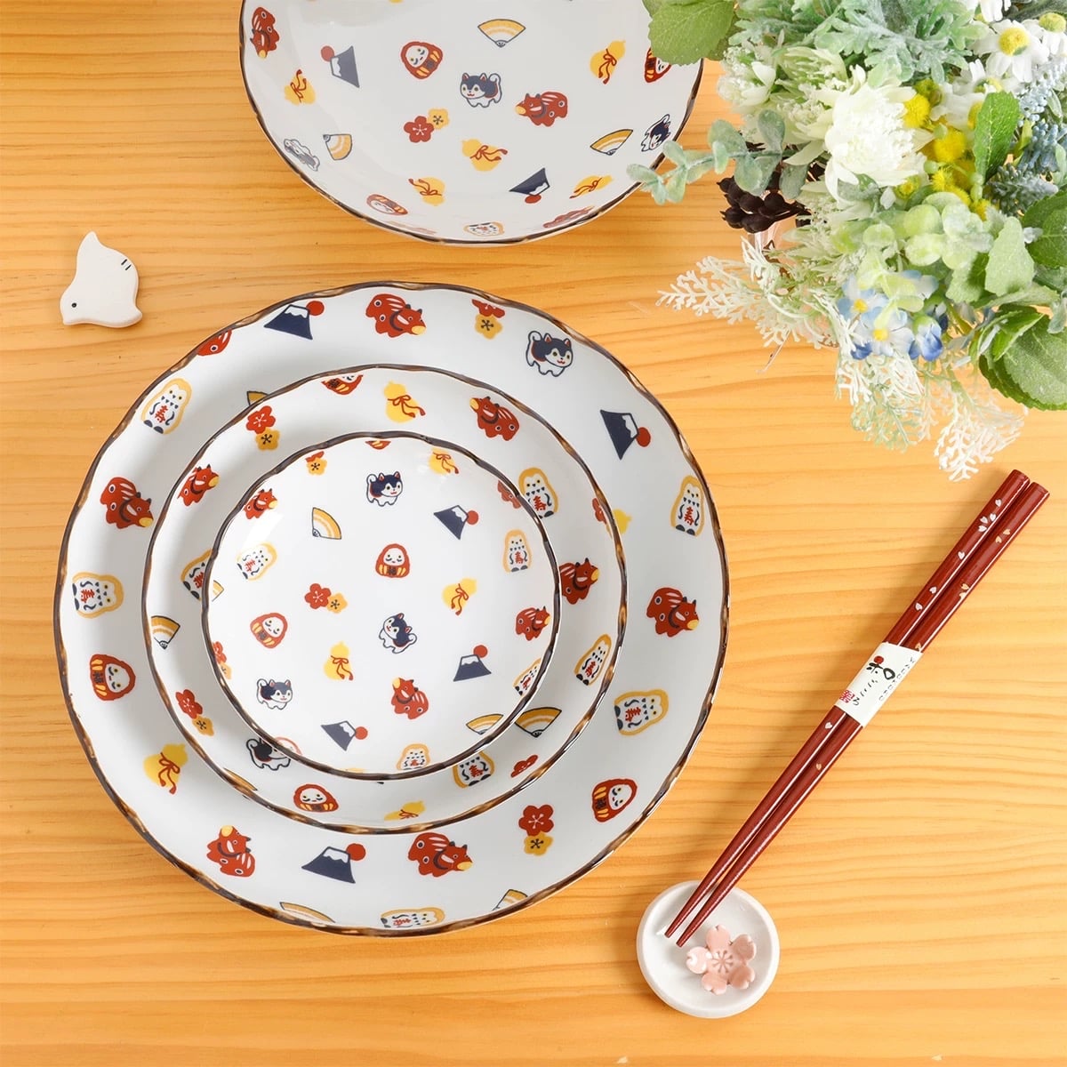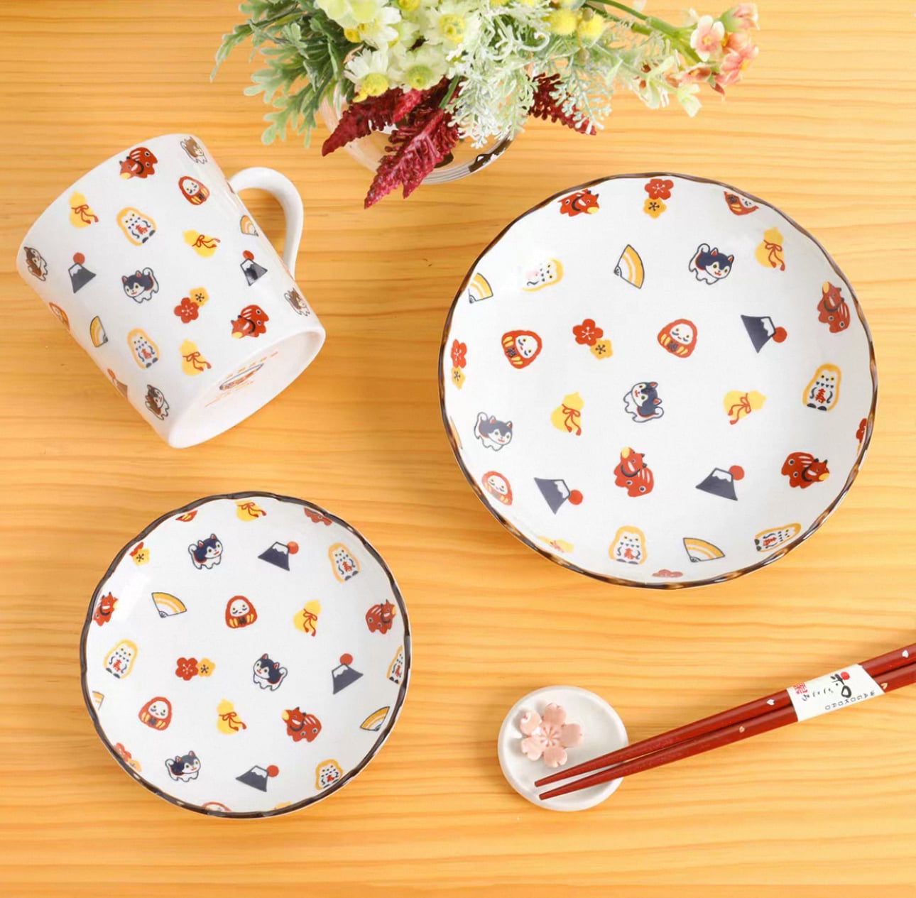 日本製美濃燒千緣達摩吉祥紋餐具 🇯🇵日本製 🌿傳統美濃燒工藝 🌸傳統日本吉祥紋圖案 👍可入洗碗碟機、消毒櫃、微波爐 尺寸: 小盤/約12 x 2.5cm 中盤/約16.4 x 3.5cm 大盤/約 22.9 x 4.2cm 中絊/約16.8 x 4.8cm 大碗/約15.5 x 8.8cm 馬克杯/約8.5 x 8.9cm 產地:日本 材質:陶瓷