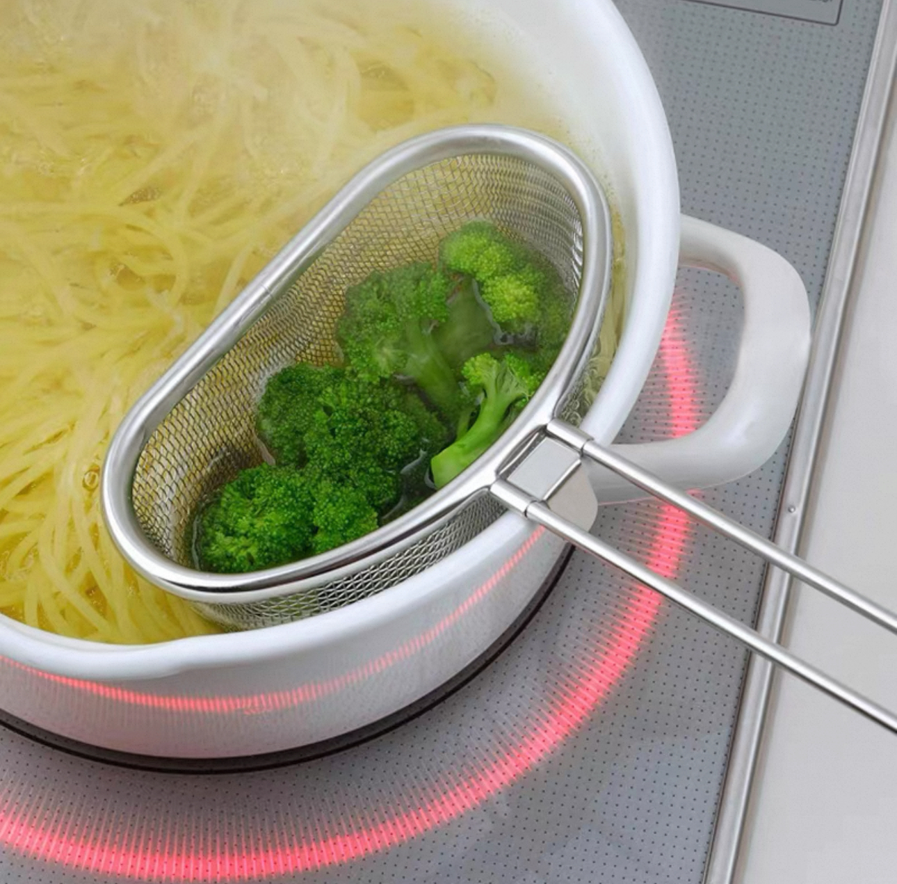 日本進口吉川304不鏽鋼深形瀝水過濾料理龬 🇯🇵 日本原裝進口 🌿煮麵的同時,更可縮短料理時間 🌷卡扣設計,釋放雙手 🌻細密網孔,過濾乾淨 🪻加長手柄,握拿方便 尺寸:見附圖 *本產品適用於14 cm以上直徑的鍋 產地:日本 材質:304食品級不鏽鋼