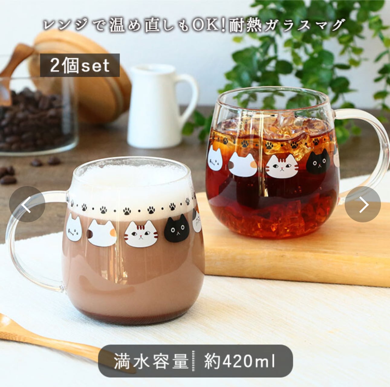 日本進口耐熱貓咪玻璃杯套裝 🇯🇵日本原裝進口 🌿這款耐熱玻璃杯讓您一年四季都能享用喜愛的飲品,無論是熱飲還是冷飲 🌷杯子採用耐熱玻璃製成,讓您一年四季都能享受喜愛的飲品 🌻如果飲料變冷,您也可以用微波爐加熱。 🪴可愛的貓咪設計讓人心情愉悅,愛貓人士一定會喜歡 🪻可微波加熱的杯子非常適合日常使用,一年四季皆可使用。也是一份很棒的禮物 ▼尺寸:直徑約7.1公分 x 最寬處約12.5公分 x 高約9公分 ▼容量:約420毫升 ▼重量:約130克 ▼產地:中國 ▼材質:耐熱玻璃(耐熱溫度高達120°C) ▼微波爐適用:是