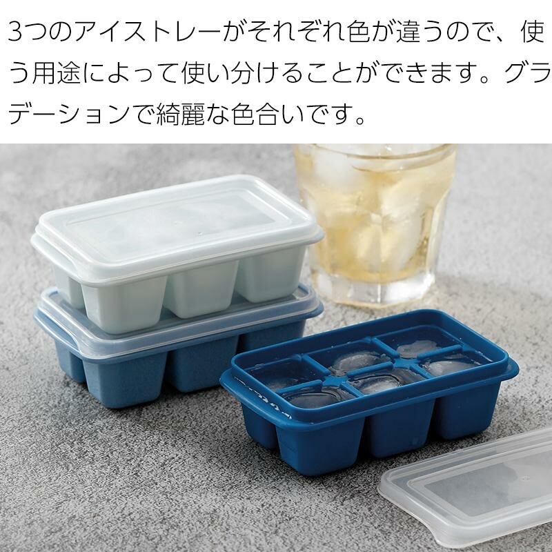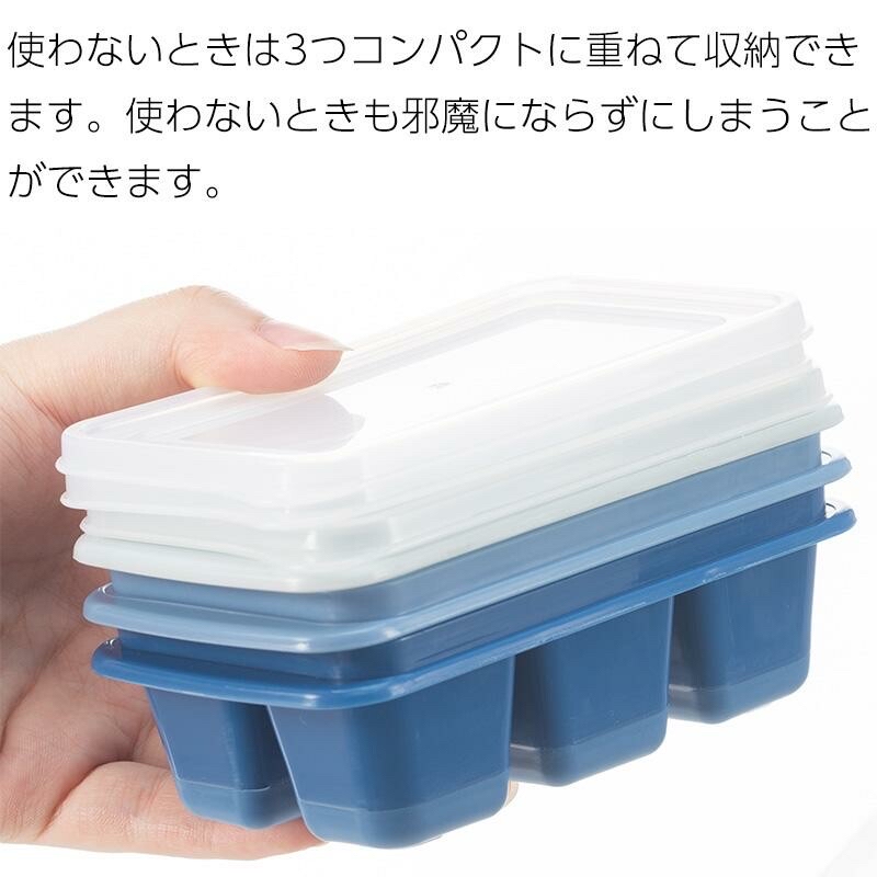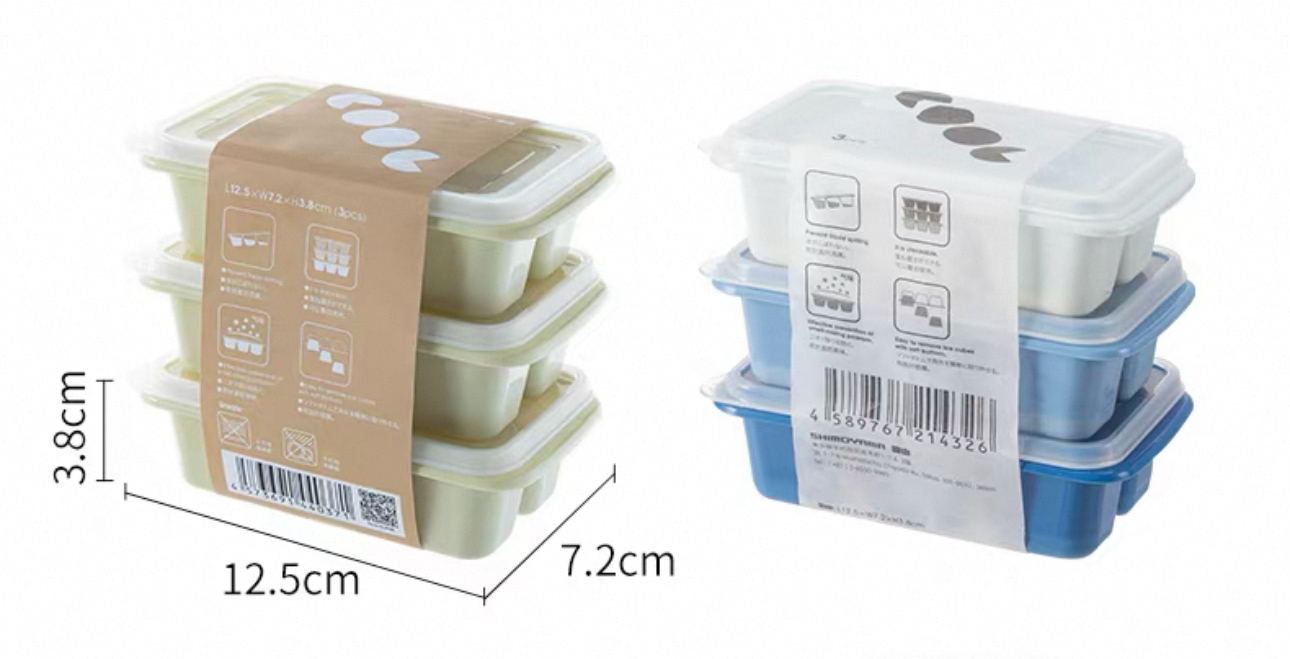 日本霜山冰塊模具(升級款) 🇯🇵日本原裝進口 🌿一套三個,可堆疊存放,節省空間 🌸蓋子柔軟,具有一定密封性 🌻軟底設計,一按輕鬆脫模 尺寸:一套三個(每款顏色一個),12.5 x 7.2 x 3.8cm(一個尺寸) 產地:中國(日本品質) 材質:塑料(耐溫-20至100度)