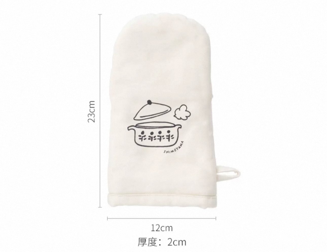 日本霜山加厚烘焙隔熱手套 🌿內含填充棉,防燙隔熱,可耐高溫 🌸三層防護隔熱,鯊魚口抓取有力 🌻貼𡰪左右手型,左右手皆可使用 🪴手腕部加長,不易燙傷 👍掛繩設計,便於收納 尺寸:見附圖 產地:中國 材質:棉、滌綸
