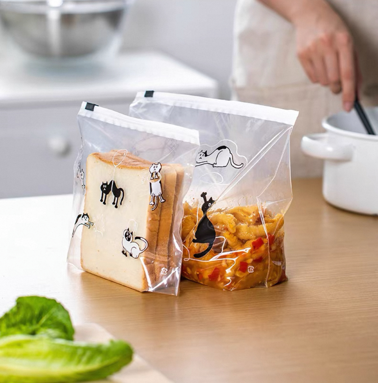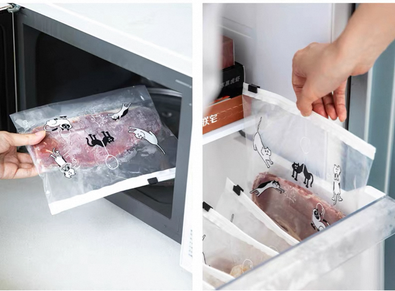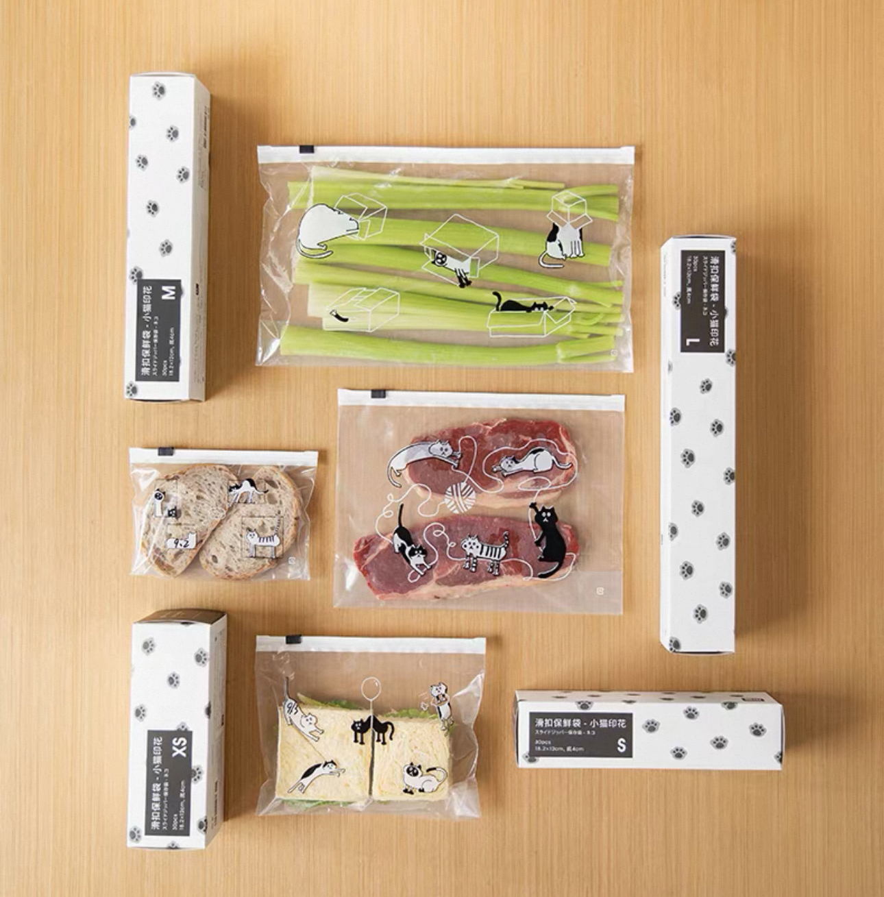 日本霜山貓咪滑扣式拉鏈式保鮮袋 🇯🇵日本原裝進口 🌿四款規格設計,滿足不同需求 🌷貓爪滑扣,拉鏈式開口,𣈱快開𡰪 🌻密封性佳,橫向開口設計,方置便利 🪴底部加寛設計,容量更大,即使含液體也能輕鬆站穩 🪻耐溫-30至70度,可放冰箱或微波爐解涷 尺寸:見附圖 產地:中國 材質:LDPE *新舊版本拉鍊扣有輕微不同,隨機發貨,敬請留意