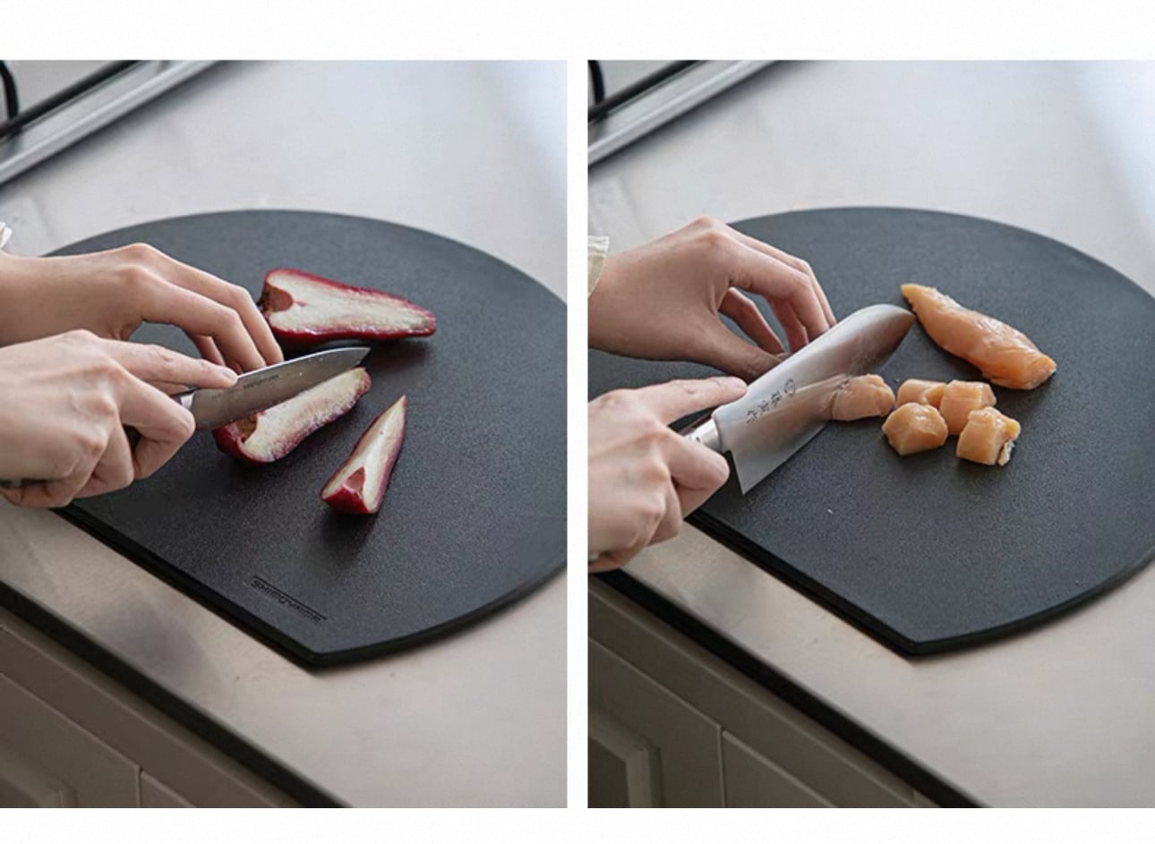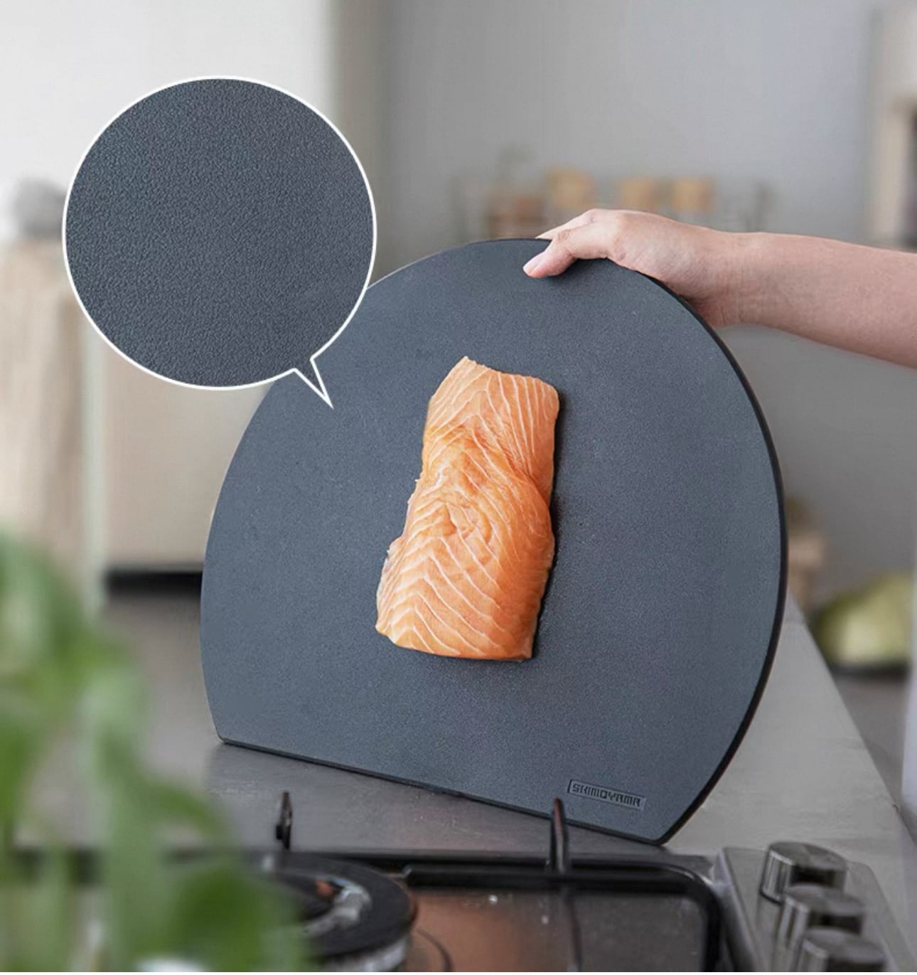 日本霜山TPE可立式半圓切菜板 🇯🇵日本原裝進口 🌿 TPE材質,刀感如切木砧板,切菜板具有一定彈性,使刀具不易受損,減少操作時對手部的負擔 🌷D字造型,切合工作枱邊緣,切好咗之後可以直接來撥入料理盤中 🌻使用後可以站立放置,晾水瀝乾 🪴雙面可用,避免交叉感染更健康 🪻防滑耐磨,表面富有紋理,增加與食物的摩擦,避免滑動 👍大尺寸,輕重量,輕薄柔軟,可將切好的食物移入鍋中 尺寸:見附圖 耐熱溫度:130度 產地:中國(日本品質) 材質:TPE