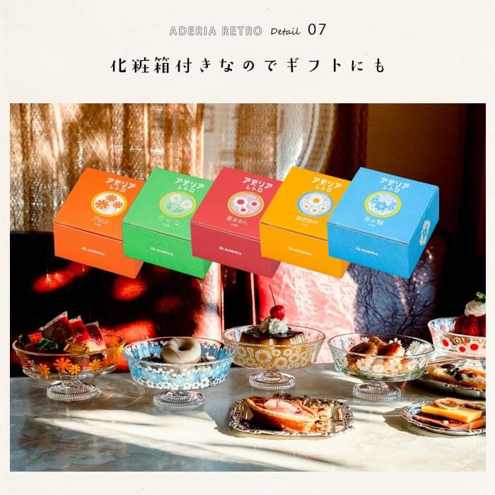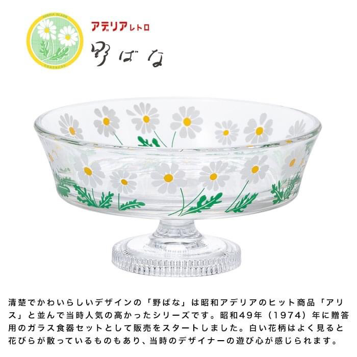 日本ADERIA昭和復古高腳淺口甜點杯 🍨清澈玻璃上塑造出可愛的花卉圖案,充滿了復古味道 🍦美麗之處是腳子雕刻出整齊的坑紋 🌿不只盛放果凍和冰淇淋,還可以用來放糖果曲奇小吃,或收納小物件 靈感來自1970年代經典昭和復古系列,玻璃瓶身印上花朵圖案,散髮著昭和年代氛圍,復古圖案再結合現代元素的流線形玻璃罐,配上具懷舊質感的金箔壓印商標設計,握上手時令我們好像回到過去一樣。 產地:日本製 材質:手工製造玻璃 尺寸:125mm X 125mm X 60mm 容量:225ml 重量:278g 款式:アリス/野ばな/花まわし/花ざかり/花の輪 ※不可使用微波爐、洗碗機 ※不是耐熱玻璃,請勿把剛煮好的沸水倒入 ※清洗擦拭後,請放置於通風處自然晾乾。 ※請使用海綿或抹布清洗,請勿使用粗糙用品清潔,以免造成表面刮痕 ※玻璃製品在製作時會出現少量氣泡,接痕等,非質量問題並不影響使用 ※請勿讓玻璃溫差過大,溫差會導致商品破裂