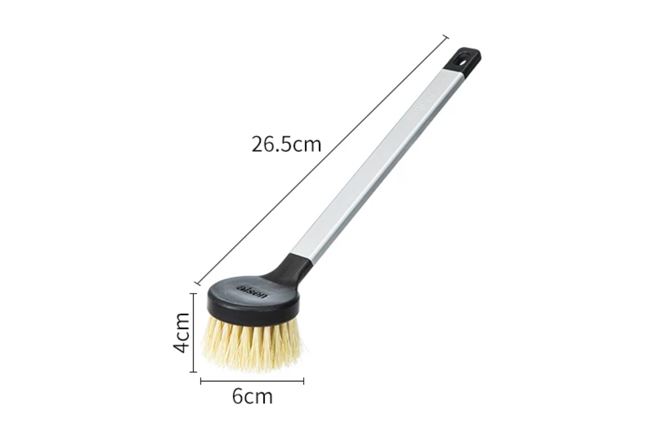 日本Aisen耐高溫長柄鍋刷 🇯🇵日本原裝進口 🌿植物纖維刷毛,柔韌性好,刷洗不易刮傷物體表面,還能用來清理蔬果的泥垢 🌷加長上翹鋁柄,上揚角度符合人體力學,使用省力不弄污雙手 🌻耐高溫不變形,耐溫80度,可用熱水刷洗,不用擔心刷毛變形 🪴油污遇水自然分離,刷毛輕鬆洗淨 🌸刷頭可拆卸,便於清洗和替換 尺寸:見附圖 產地:中國 材質: 手柄/鋁,聚丙烯 刷毛/植物纖維 替換插頭本體/聚丙烯