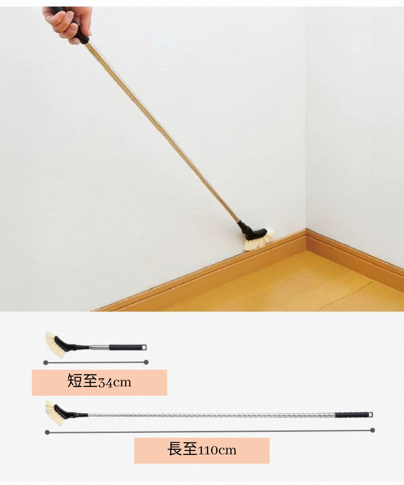 日本Cogit可伸縮清潔刷 🇯🇵日本原裝進口 🌿細密波浪形刷毛,牢牢抓住細小灰塵和毛髮,一掃即淨 🌷弧形刷頭,觸級角落,貼合牆面彎、家具直角,一次劃過可將污垢輕鬆掃出 🌻40度傾斜 貼合縫隙,適用於多種埸境 尺寸:見附圖 產地:中國(日本品質) 材質:不繡鋼,聚丙烯,PBT