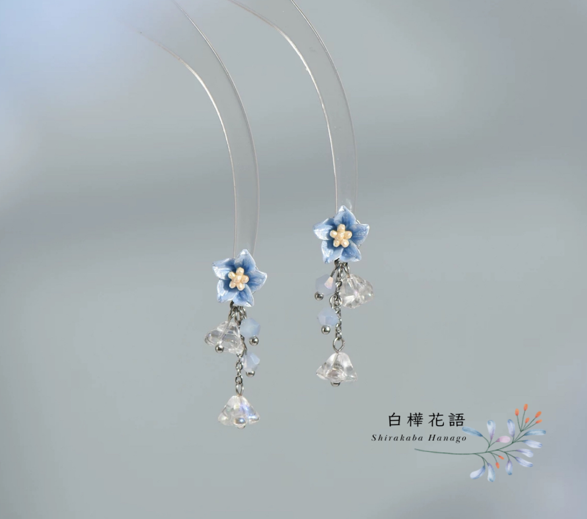 白樺花語 S925純銀藍山茶瑩花耳釘 🌿 The story is beautiful because of a flower that cannot be seen 🌿 🌿S925純銀針 🌸莫廸蘭色系花朵,清新文藝氣息 尺寸:見附圖 材質:純銀針,亞加力 款式:耳釘款