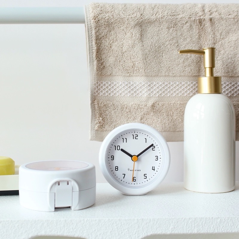 韓國MJK廚房浴室防潮靜音掛鐘(掛鉤款) 🌿生活防水防潮,可於浴室廚房使用 🌷RoHS,CE歐盟認證 🌻環保材質,低功耗節能,多種顏色 🪴可以掛起來,掛鉤360度旋轉 尺寸:高90mm,寛90mm 產地:中國 材質:韓國MJK機芯,塑料
