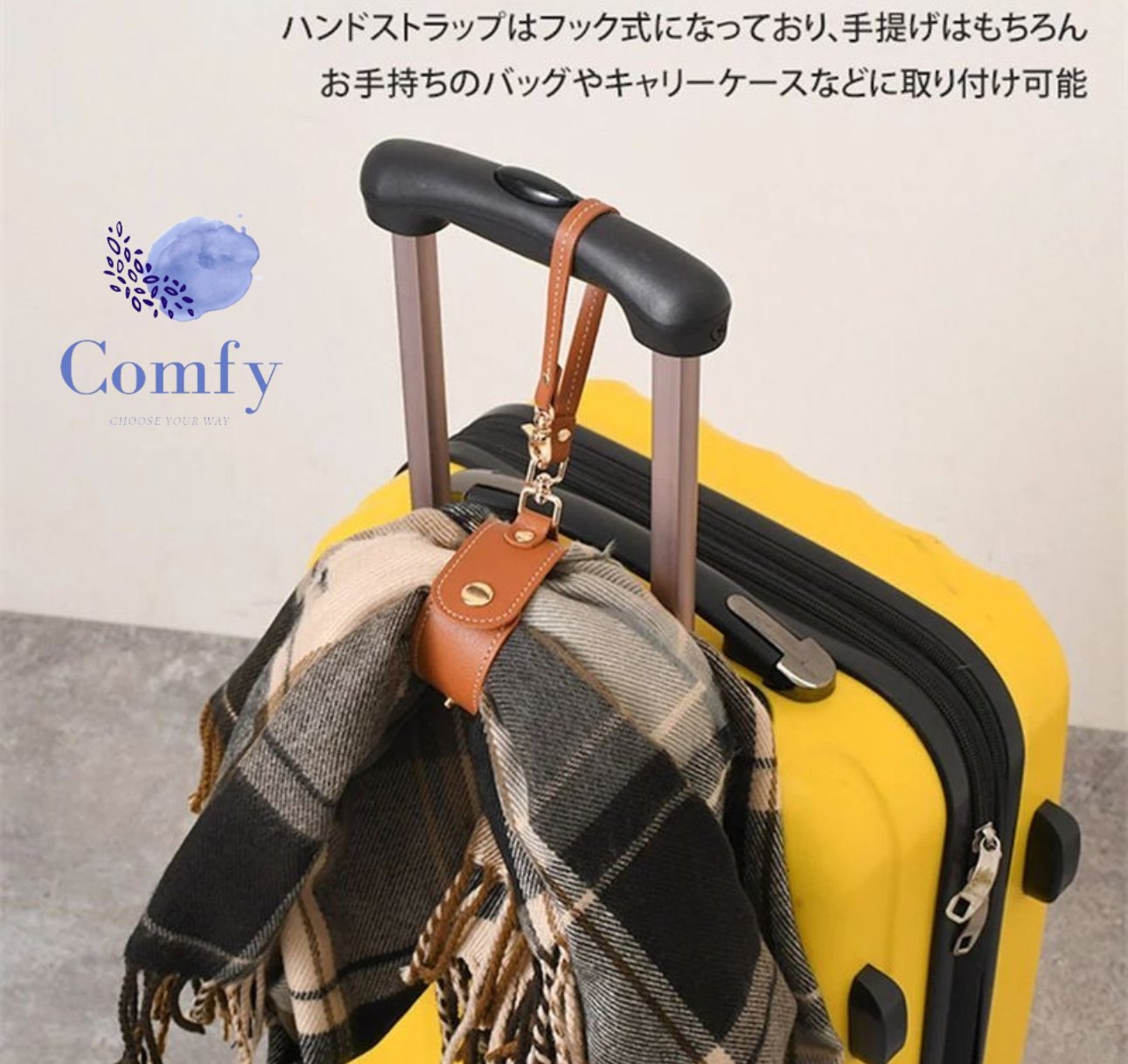 Comfy手袋皮革掛環 🌿扭扣兩格調節功能 🌷可扣在手袋或行李上 🌻小巧設計,方便携帶 🌿Choose your way, Be comfort🌿 尺寸:見附圖 產地:中國(Comfy連携商品) 材質:人造皮革