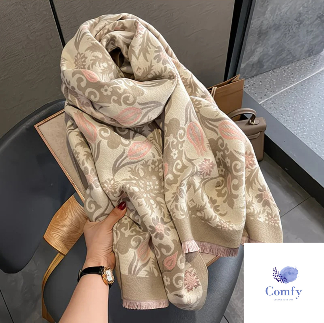 Comfy 復古鬱金香仿羊絨圍巾 🌿質地輕而軟,可作披肩或圍巾使用 大小:約寬65厘米x長185厘米 產地:中國 材料/成分:仿羊絨纖維 🌿Choose your way, Be Comfort🌿