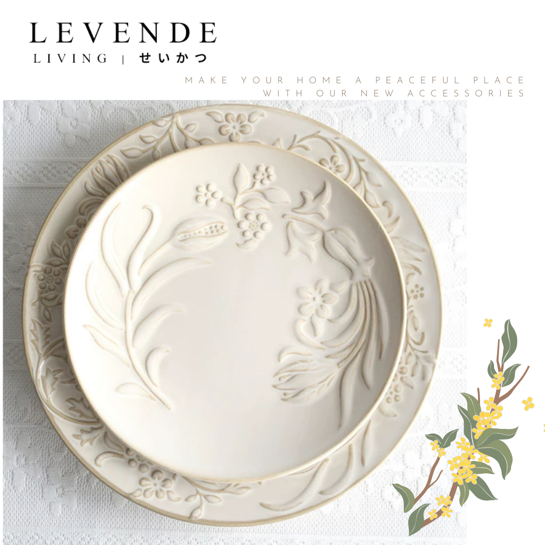 Levende月桂花浮雕陶瓷餐盤 🌿優雅造型紋理,立體別緻 🌷可入微波爐、洗碗碟機、消毒櫃 尺寸: 8吋餐盤/直徑約20cm ,高2.5 cm ,重量490g 10吋餐盤/直徑約25cm ,高3cm ,重量773g 產地:中國(Levende連携商品) 材質:陶瓷 Living | LEVENDE | せいかつ ~Lighten your simple happiness with LEVENDE life~