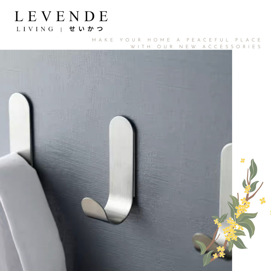 Levende 不鏽鋼免打孔浴室掛勾 🌿質感美觀,用途廣泛 🌷免打孔設計,免釘牆面 🌻304不鏽鋼,拉絲工藝 🪴承重約5kg,防潮耐熱 尺寸:見附圖,每包4個 產地:中國(Levende連携商品) 材質:304不鏽鋼 Living | LEVENDE | せいかつ ~Lighten your simple happiness with LEVENDE life~