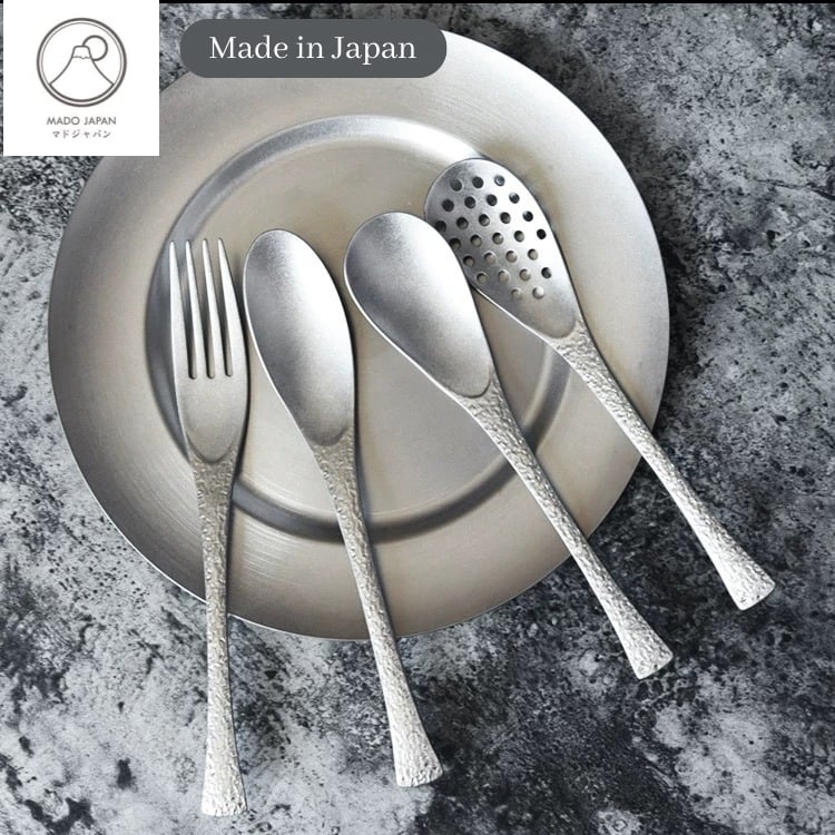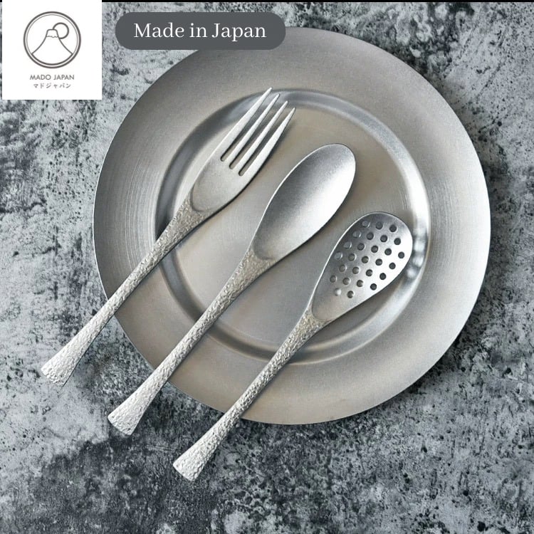 Mado JP 日本手工錘紋餐具系列 🇯🇵日本製 🌿和風錘目紋理 🌷表面經過石洗處理,打磨造舊,讓光澤呈現復古內斂的氣質 🌻日本匠人手工製作 🪴一體成型,流𣈱弧度更易持握 🌸餐具邊緣打磨光滑,增加精緻感 透過Mado JP連携,把日系生活風格帶回家 🥰 尺寸:見附圖 產地:日本(Mado JP 連携商品) 材質:304不鏽鋼 * 由於每件均由日本匠人手工製作,表面會有一些凸起、劃痕、錘目紋理大小不一,並非質量問題,敬請理解。
